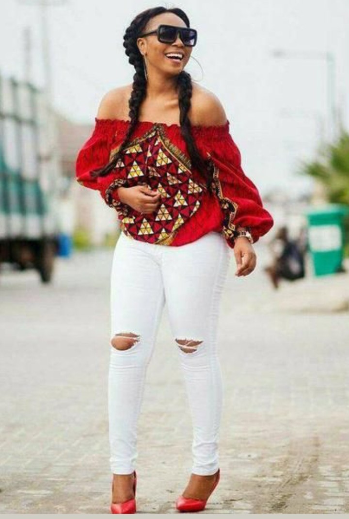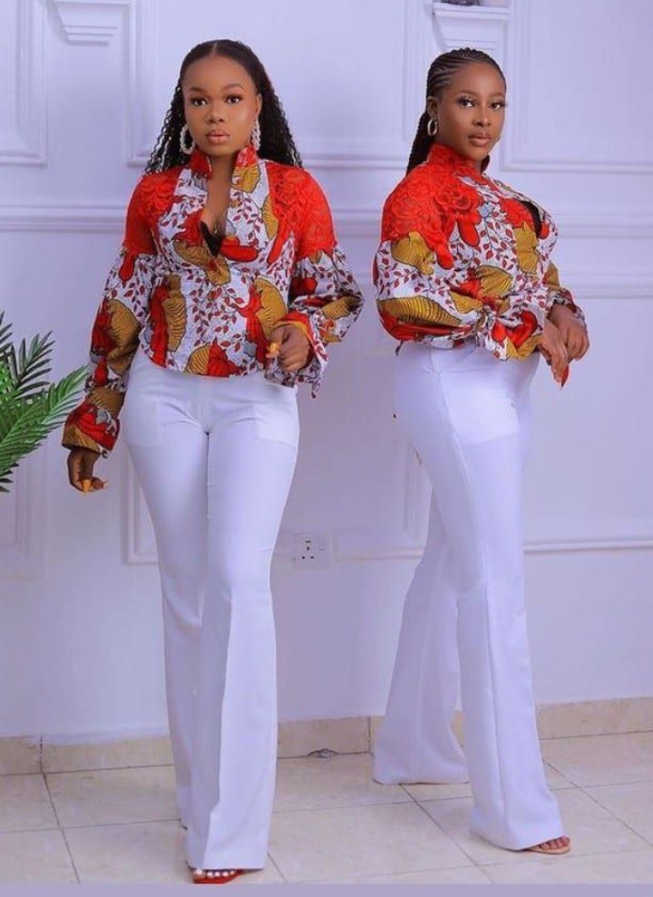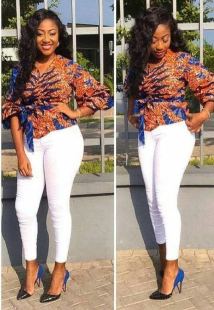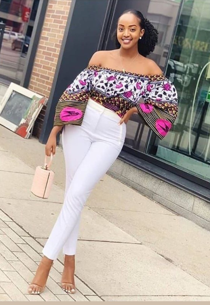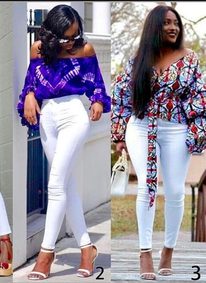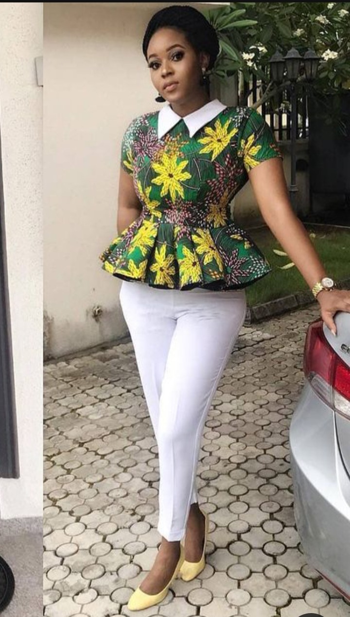 How To Rock Beautiful Ankara Tops With White Trousers.