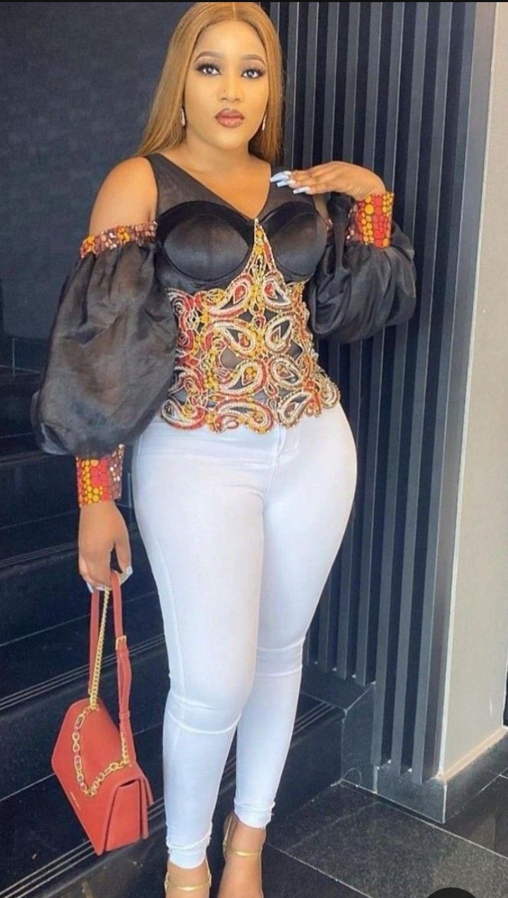 Conclusion: Pairing beautiful Ankara tops with white trousers is a dynamic way to showcase your fashion-forward style. Whether you’re attending a social event, heading to work, or just want to make a stylish statement, this combination is versatile and adaptable to different settings. Embrace the vibrancy of Ankara prints while keeping your look elegant and fresh with the neutral backdrop of white trousers.