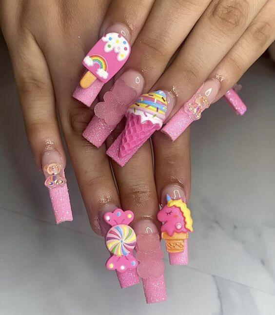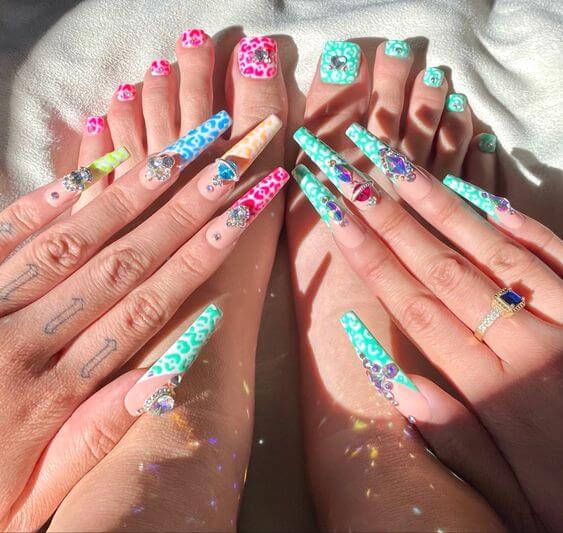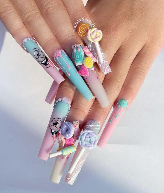 Because they resemble ballet shoes when worn, these nails have also been dubbed “ballerina” nails. You might think this is a new trend, but coffin nails were extremely popular in the 1990s and have only recently resurfaced. If you want these nails, you are going to have to grow them really long. Stubby little coffins are not permitted. There are many ways in which you can create these nails and we have a ton of options for you. Check out our comprehensive guide to shaping coffin nails as well as these 33 inspiring ideas to try this year.