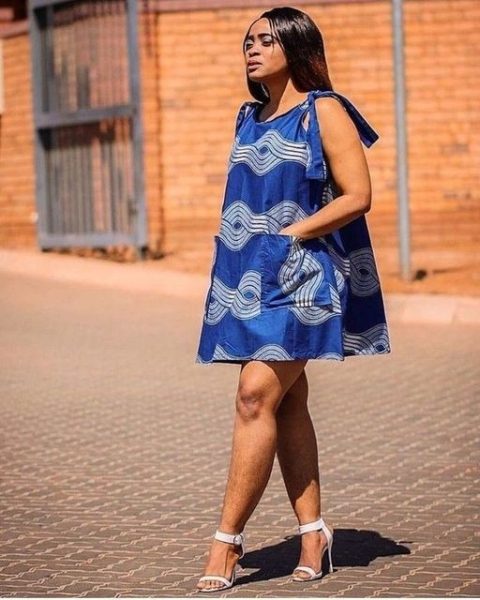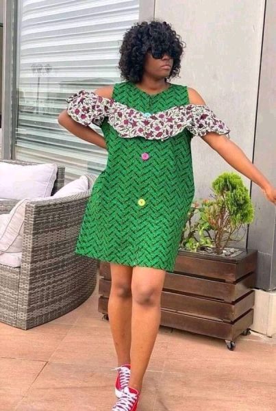- Opt for an Ankara shift dress design that has cold shoulder cutouts. It adds a touch of femininity to the simple silhouette.