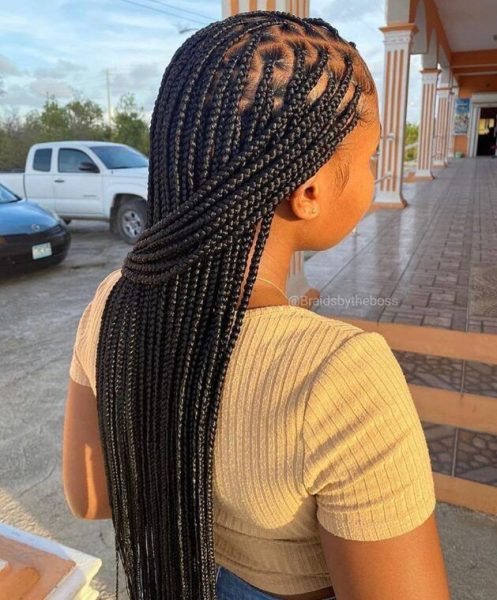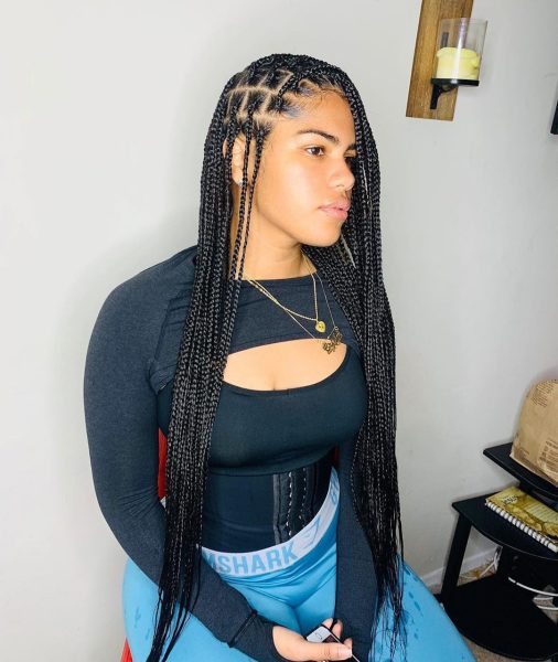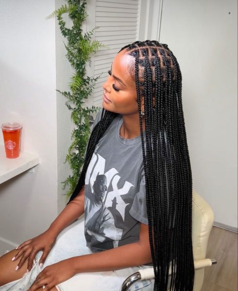 For a more daring look, combine knotless braids with shaved or undercut sides. This offers a stark contrast and an edgy vibe.