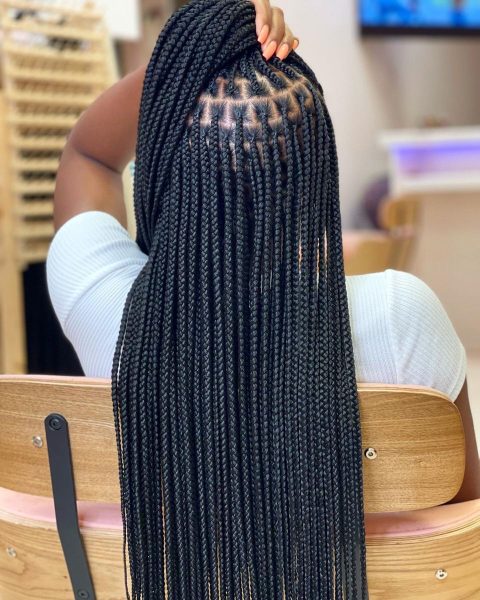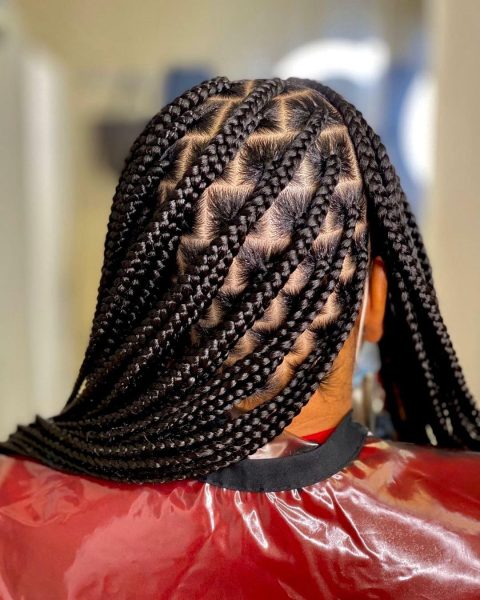 While long braids are common, a short bob made with knotless braids offers an edgy and modern look.