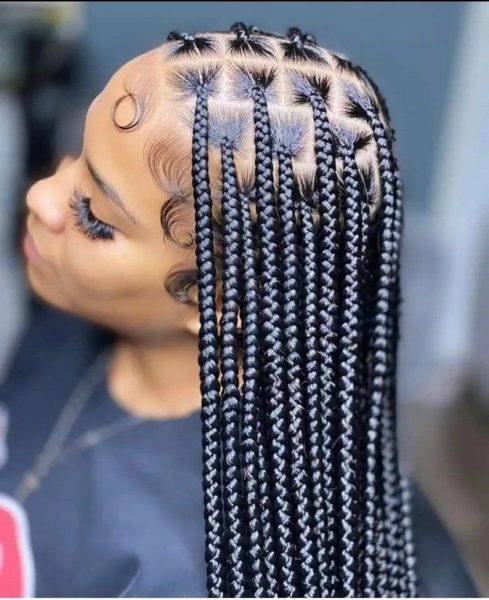 Go bold with oversized knotless braids. These are not only quicker to install but also offer a chic, statement look.