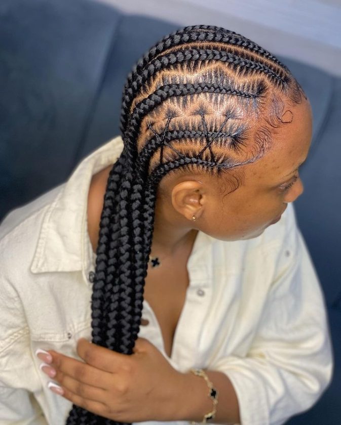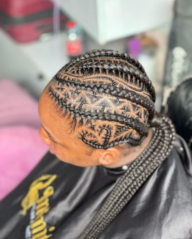 Whether you’re a lover of simplicity or someone who embraces boldness, there’s a cornrow style for you. The classic straight back cornrows are a staple, perfect for those who prefer understated elegance. For a more daring look, you can opt for zigzag cornrows, a style that adds an edge to your overall appearance. If you’re in the mood for something playful yet sophisticated, try the half-cornrow look, where half of your hair is braided, and the rest is left free.