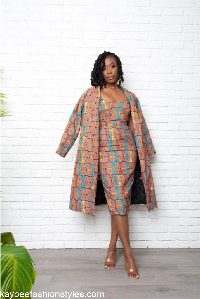 The Ankara two piece outfit can also be styled as an Ankara two piece gown styles. This can be in the form of a straight Ankara gown and Ankara jacket.