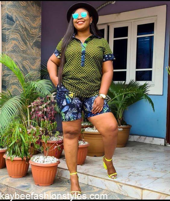 As a casual outfit, you can wear the Ankara two piece shorts and top. This style can also be worn for friendly get-togethers, family fun events, and so on.
