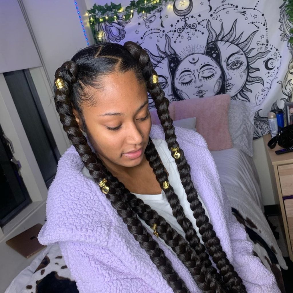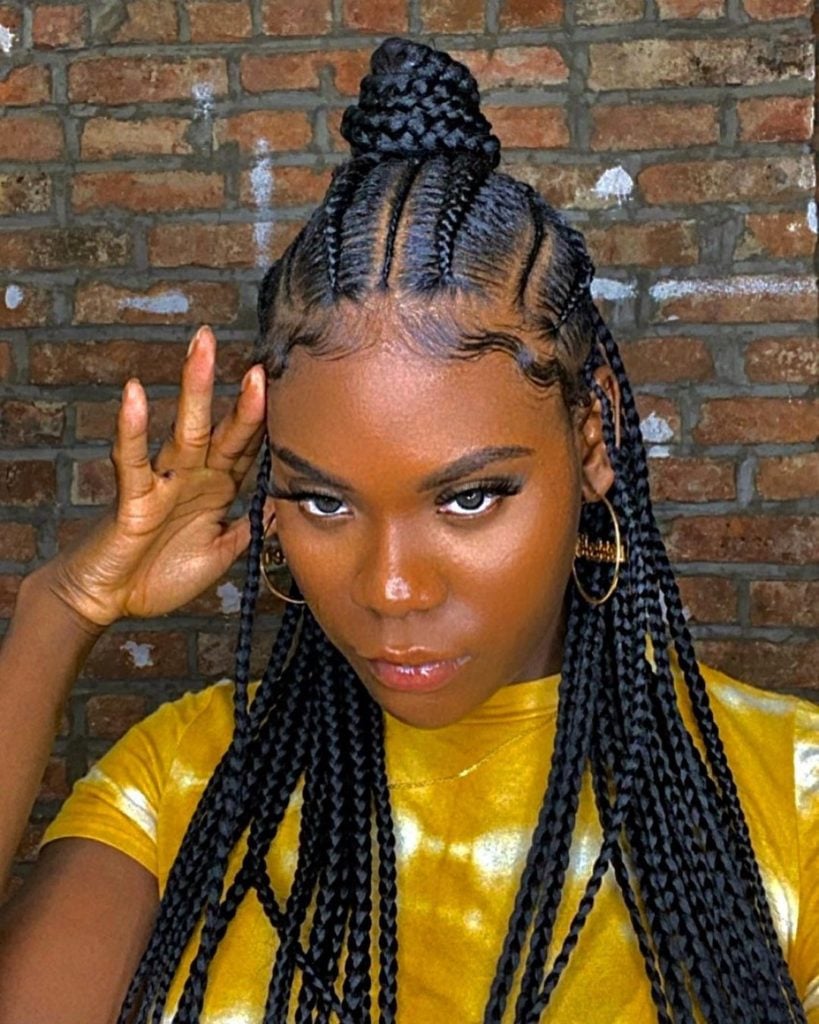 11. Goddess Braids: – Goddess braids are large, chunky cornrows that can be styled into intricate updos or left down. – They are a symbol of strength and empowerment.