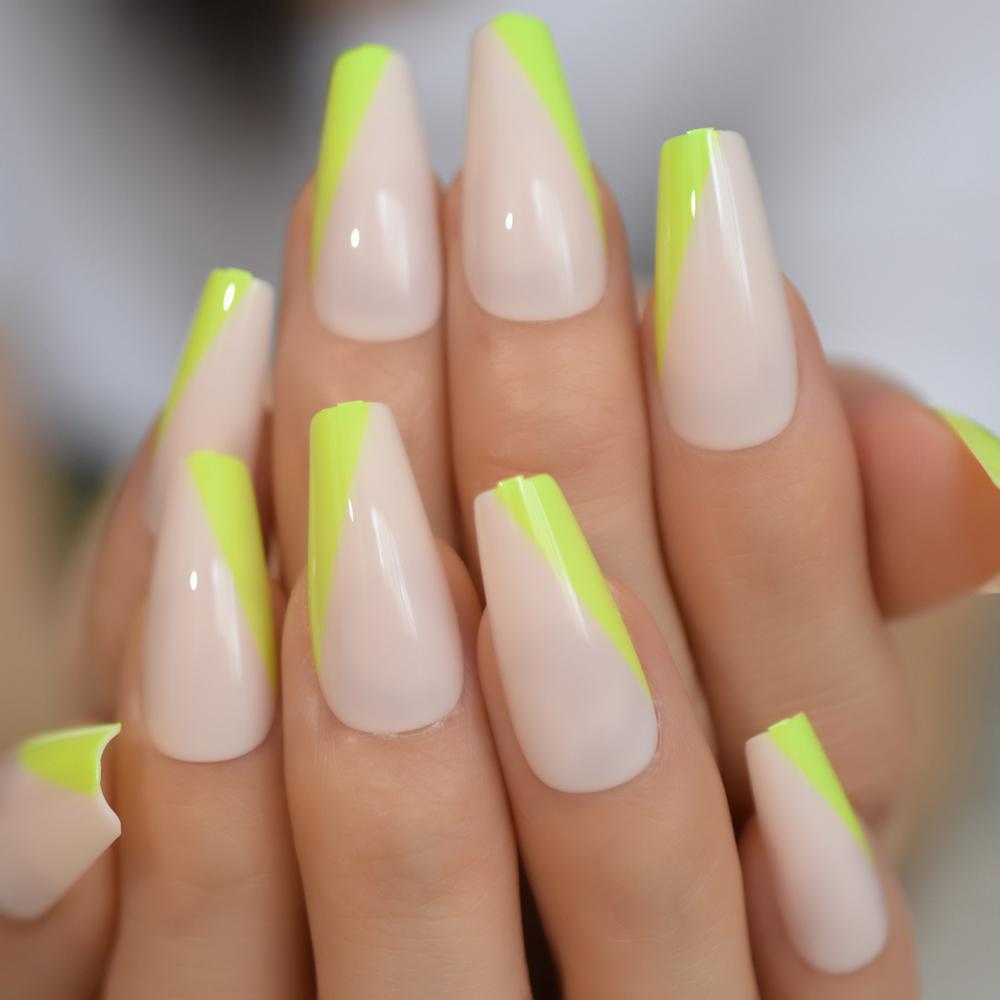Medium-Yellow-White-Ballerina-Nail-Wholesale-Nail-Art-Tips-Pre-designed-Nail-Fake-Nail-Girls-Manicure
