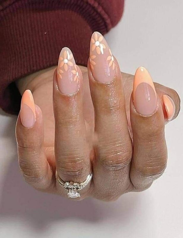7. Peachy Keen: Paint your nails in a lovely peach shade for a soft and delicate look. Accentuate with a touch of gold or a dainty floral pattern for an extra feminine flair.