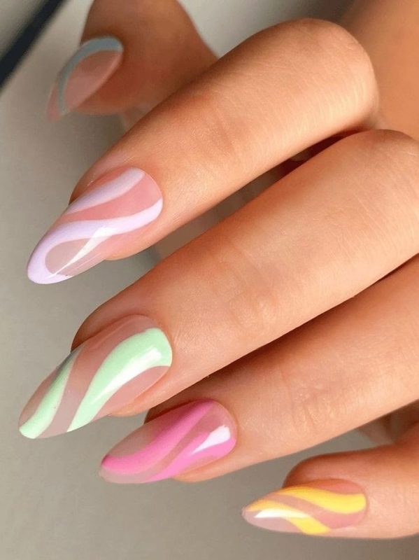 1. Sweet Candy Stripes: Create a playful look by painting thin pastel stripes on a white or nude base. Mix and match different pastel shades for a fun and vibrant effect.