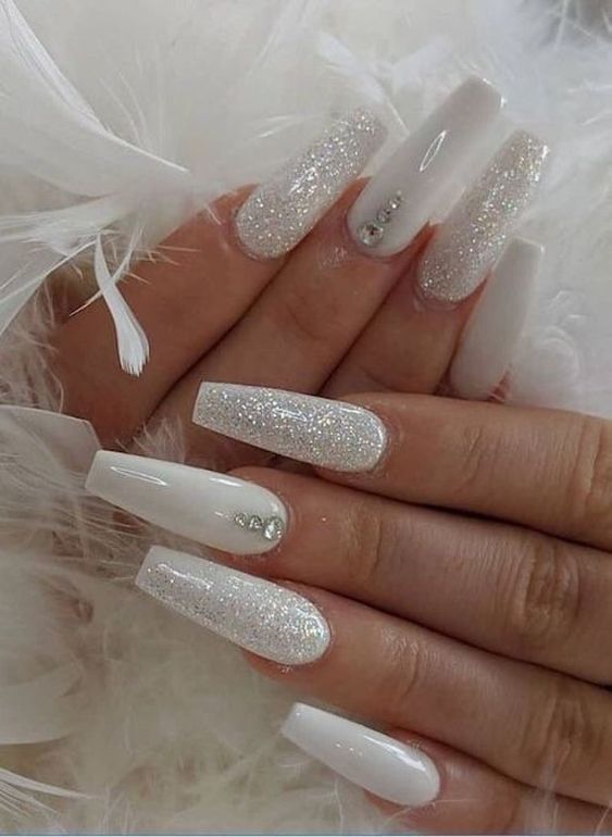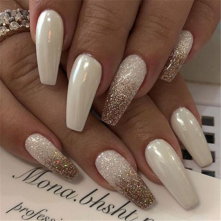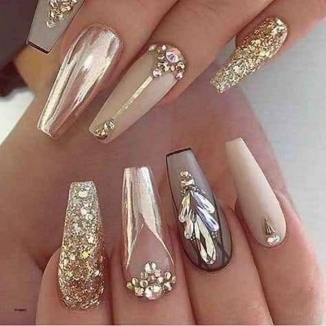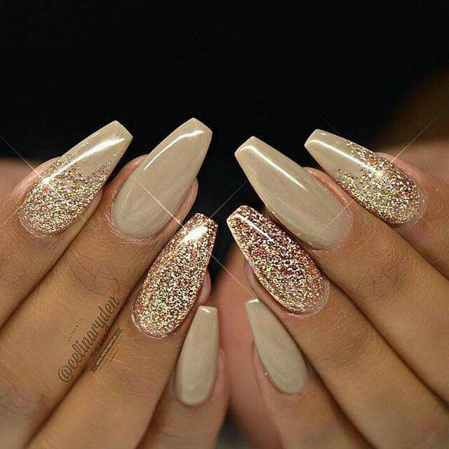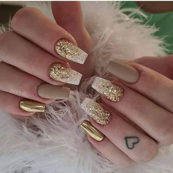 3. Gold Glitter Nails: Sparkle and shine with gold glitter nails for a dazzling and glamorous look.