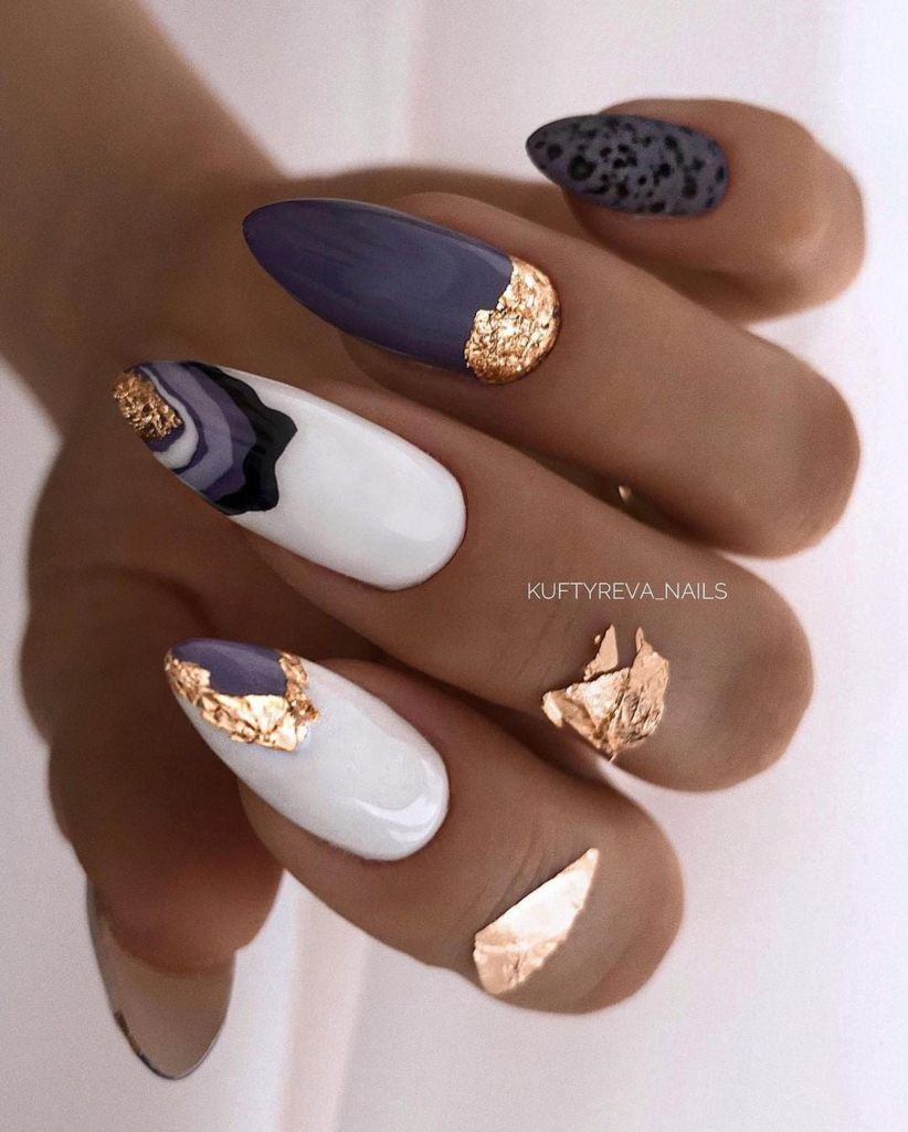 4. Gold Leaf Design: Use gold leaf flakes or foil to create an elegant and artistic design on your nails.