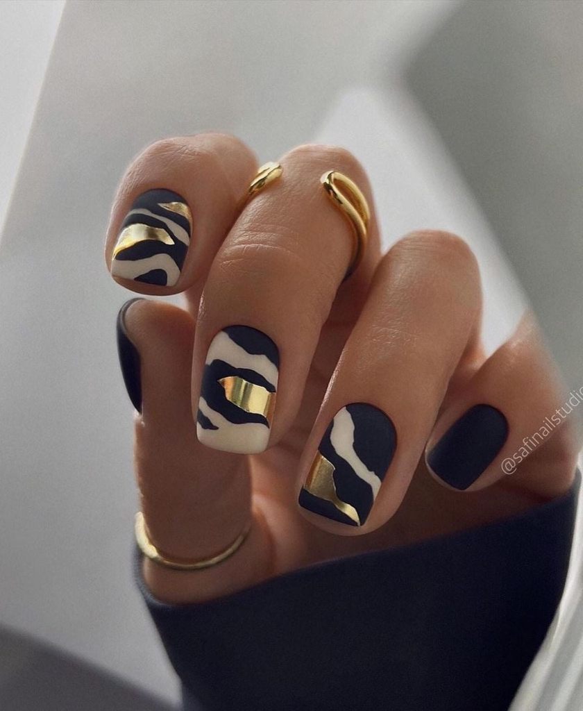 17. Gold Animal Print Nails: Embrace your wild side with gold animal print designs like leopard or snakeskin.