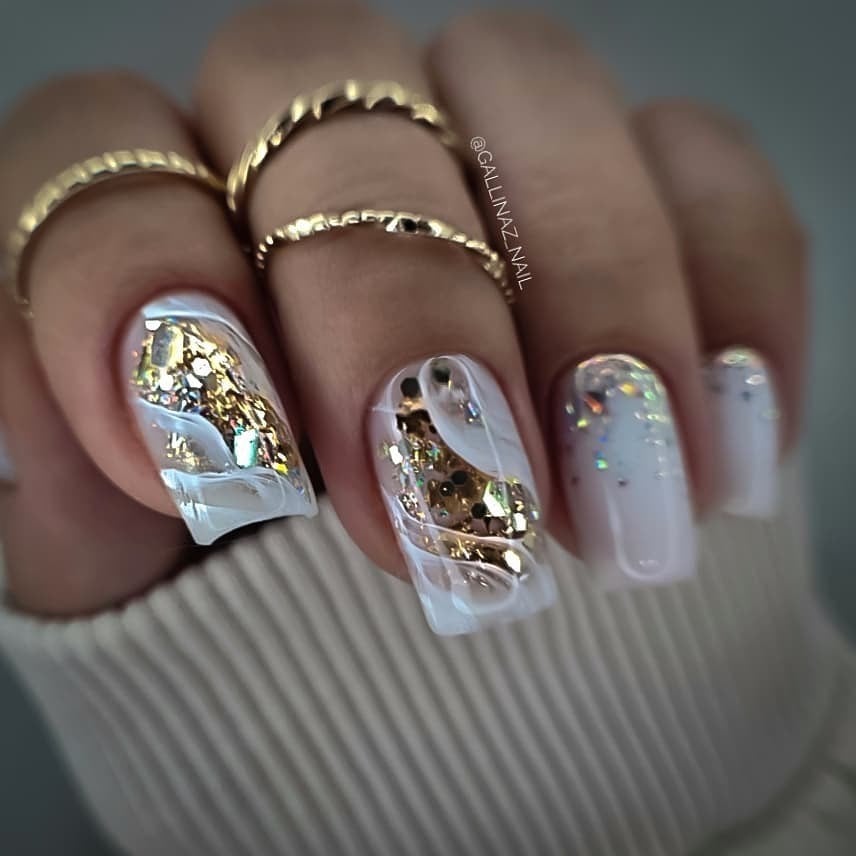 7. Gold Marble Nails: Create a marbled effect using gold and white polish for a chic and sophisticated look.