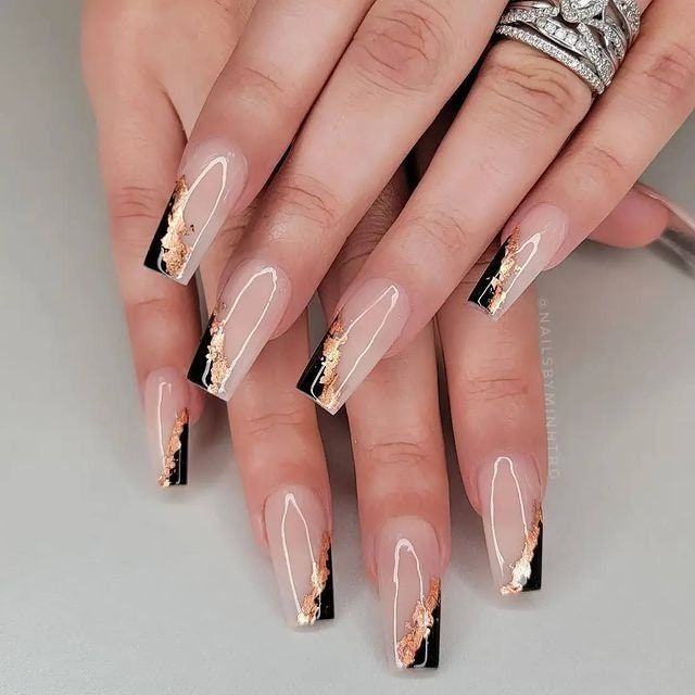 13. Gold Leaf Tips: Apply gold leaf to the tips of your nails for a unique and artistic touch.