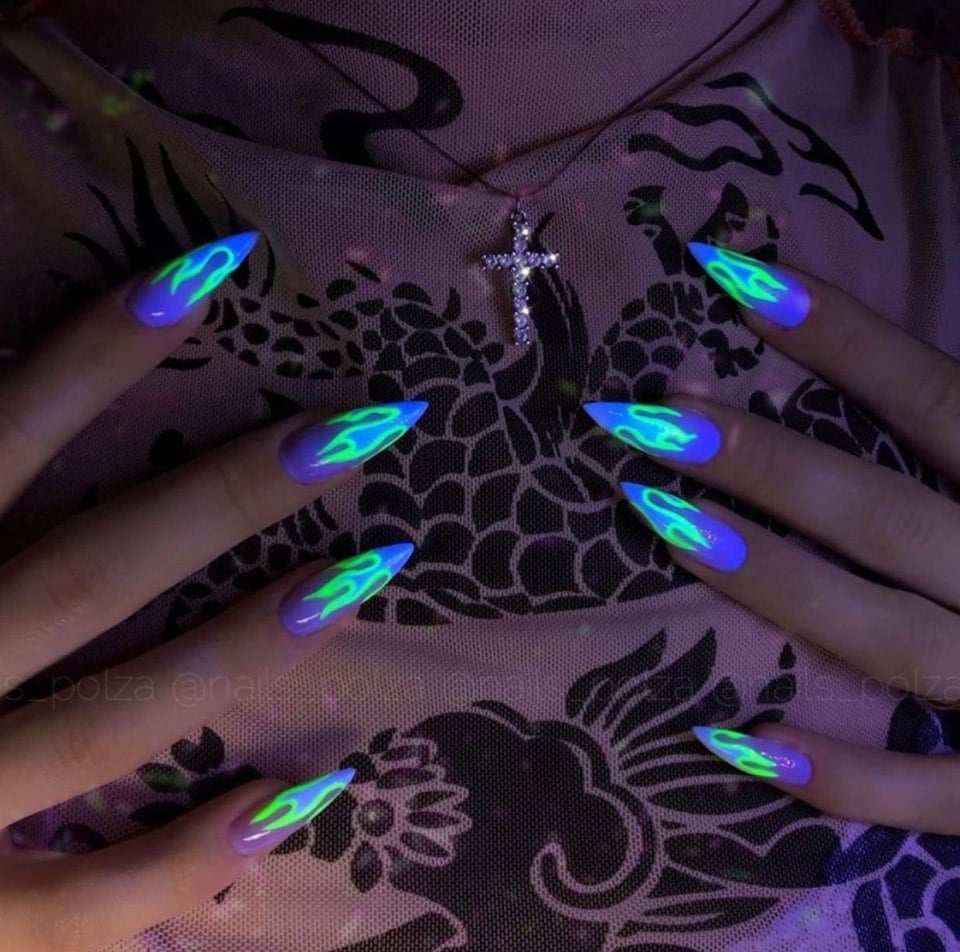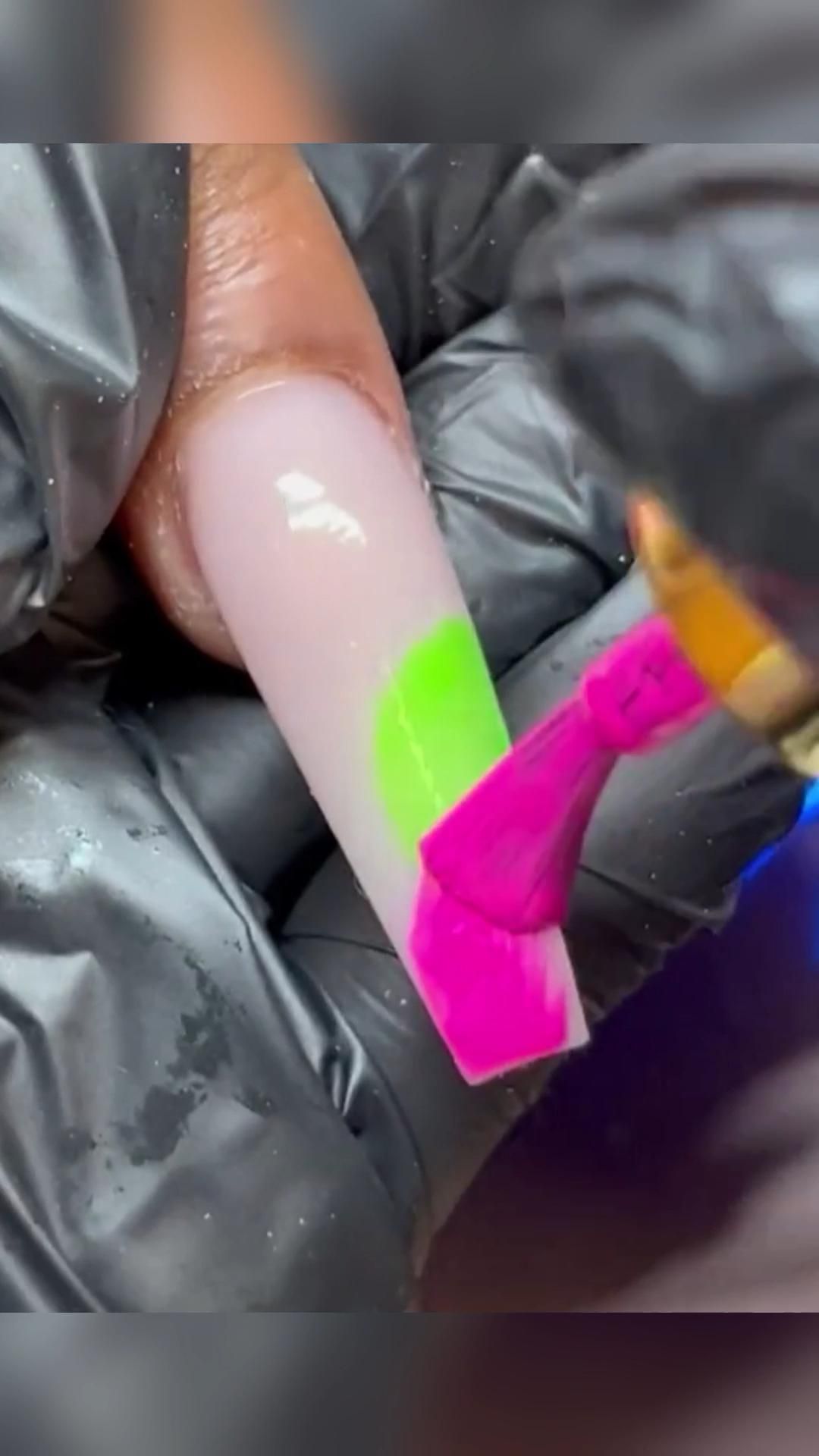 3. Neon Ombré: Create a gradient effect using different neon shades. Start with one neon color at the base of your nails and gradually blend it into a different neon shade towards the tips. You can experiment with various color combinations to create a stunning ombré effect.