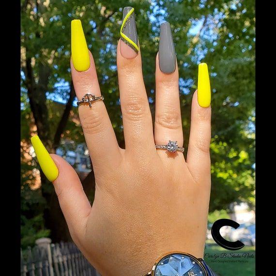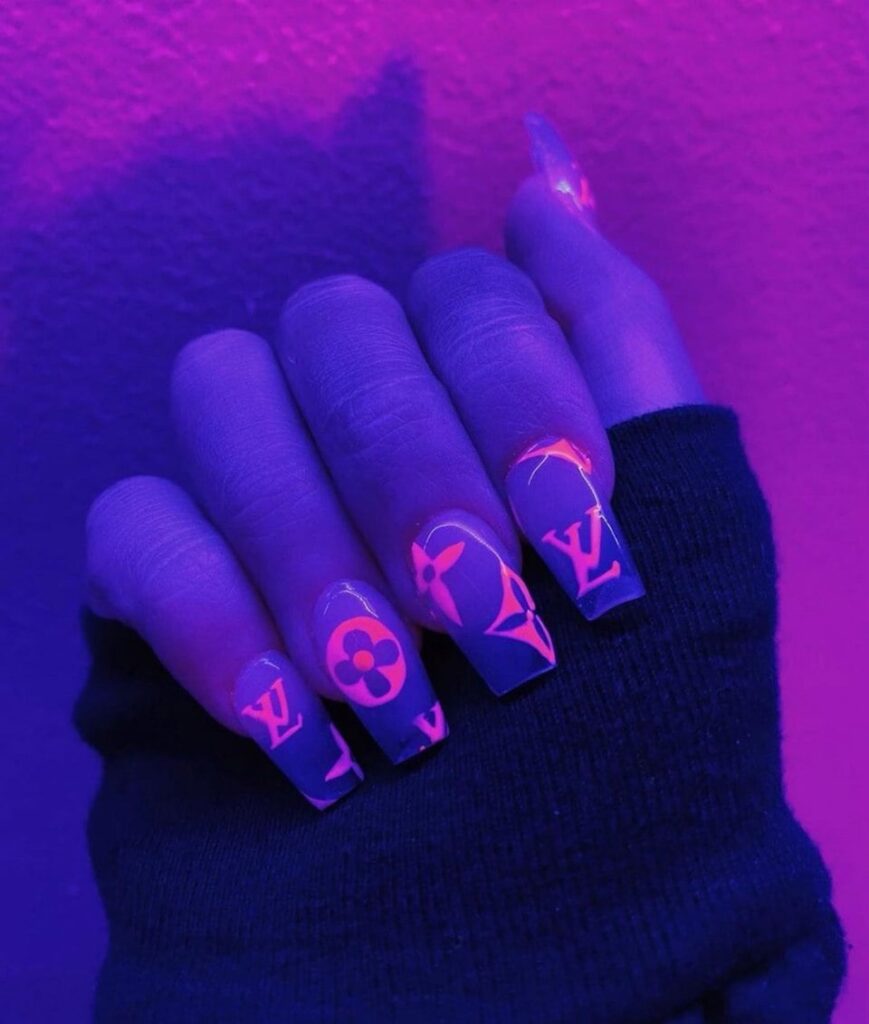 12. Neon Geometric: Create geometric designs using neon colors. Triangles, squares, chevrons, or abstract shapes can be painted on your nails using a thin nail art brush for a modern and edgy look.