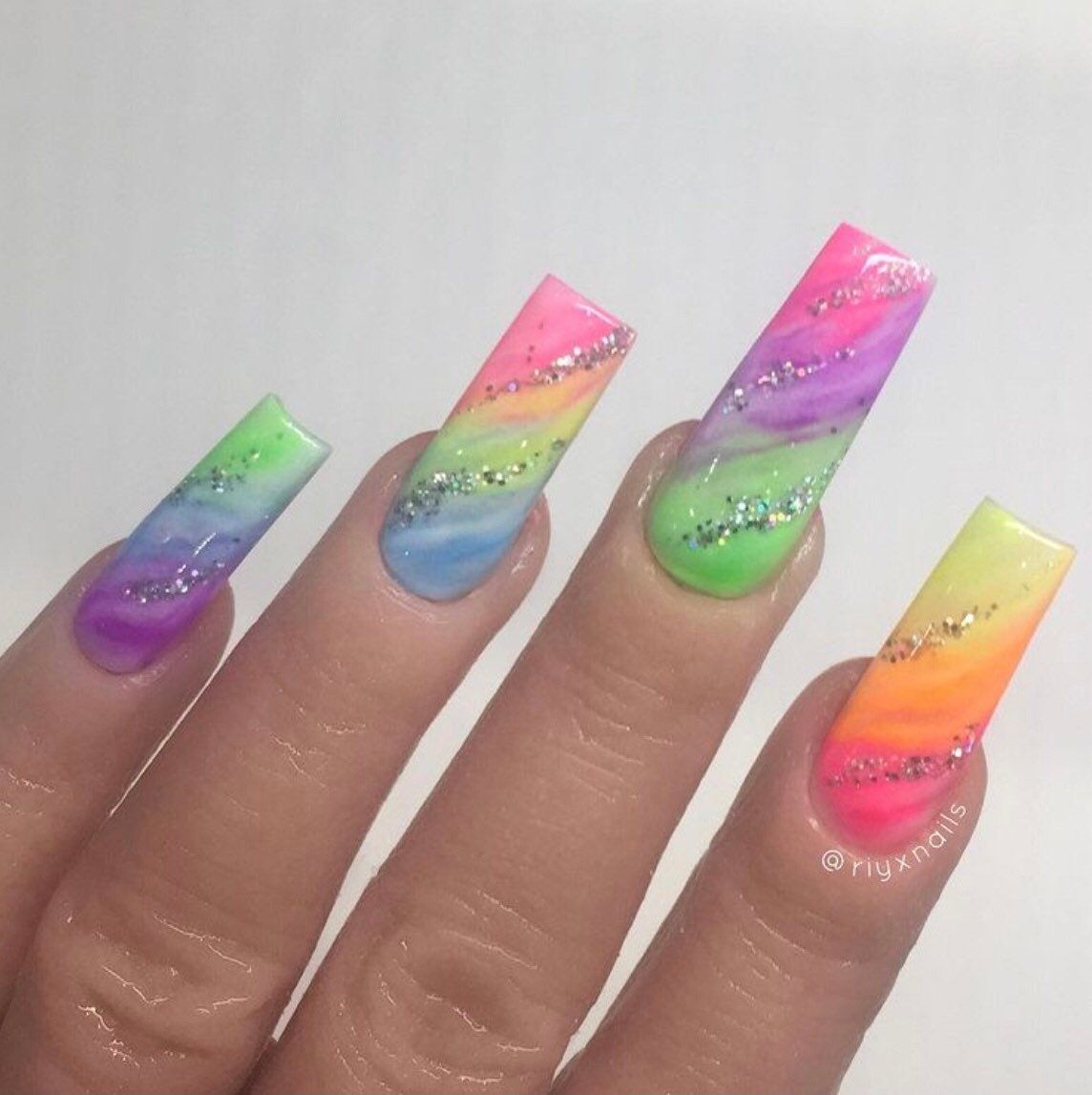 8. Neon Rainbow: Paint each of your nails with a different neon color of the rainbow for a vibrant and playful look. You can arrange the colors in any order you like or go for a specific rainbow sequence.
