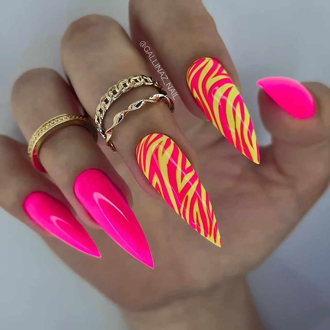 6. Neon Animal Print: Use neon colors to create animal print patterns like leopard spots, zebra stripes, or tiger stripes. Combine neon shades with black or white for a striking contrast.