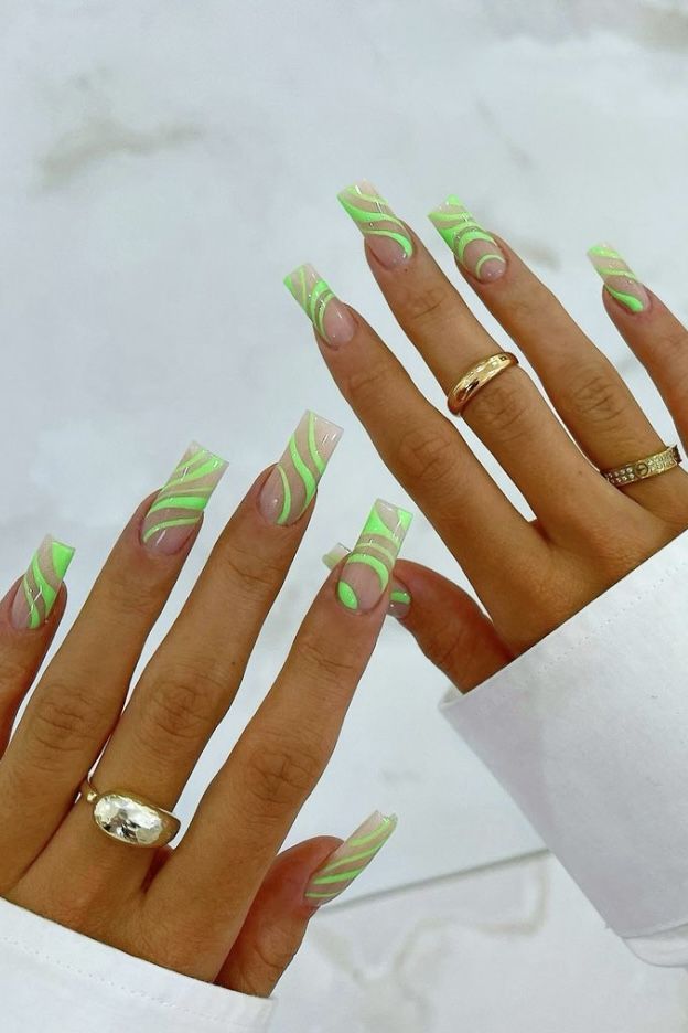15. Neon Negative Space: Leave parts of your nails bare and paint neon designs on the exposed areas. You can create lines, shapes, or intricate patterns for a contemporary and unique manicure.