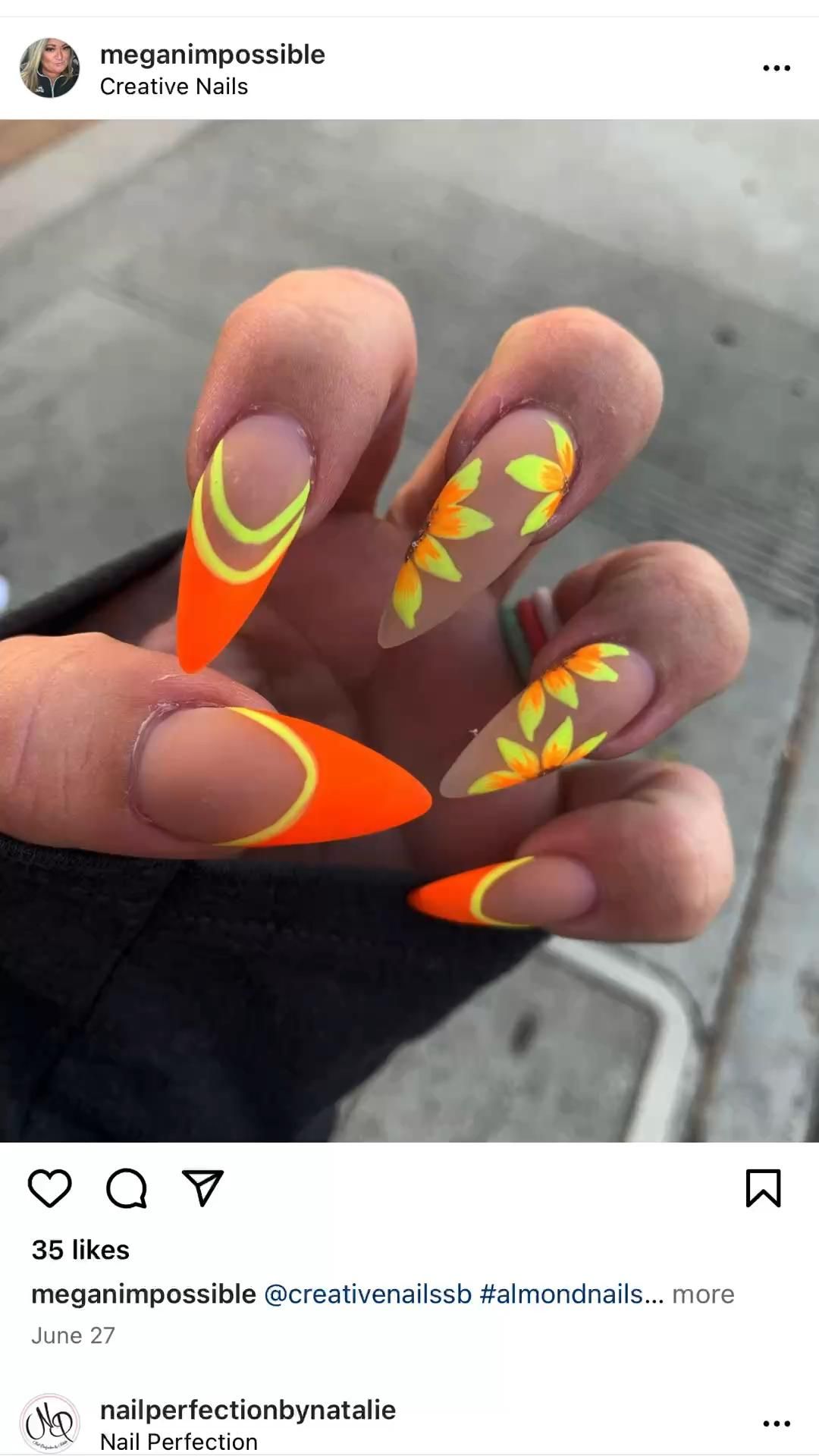 11. Neon Floral: Paint your nails with a white or light-colored base coat and create neon floral designs using different shades. Use a nail art brush or stamping plate to achieve intricate and colorful flower patterns.