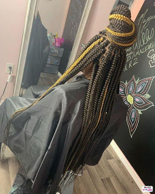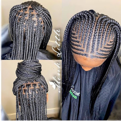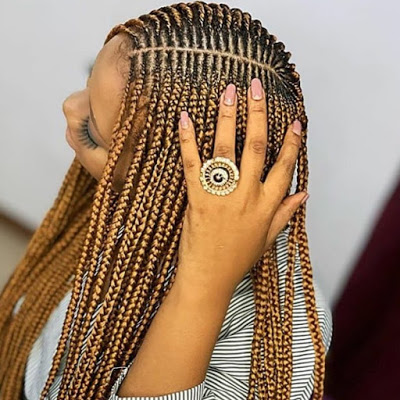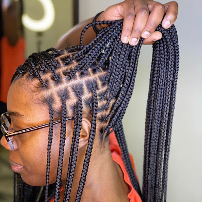 Traditional box braids get an upgrade with triangular sections instead of the usual squares, offering a geometric aesthetic.