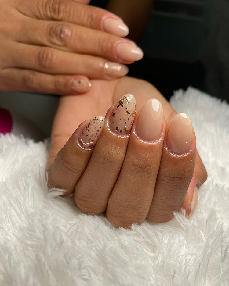 Nude-Almond-Nails-With-Gold-Glitter