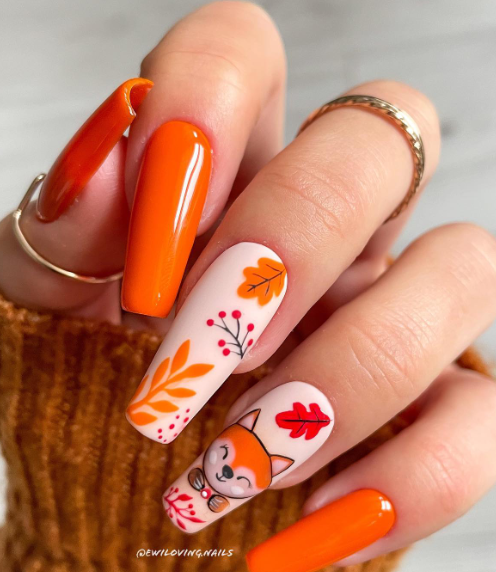 orange-fall-nail-art.-fall-nail-designs-with-fox.-fall-nails-acrylic