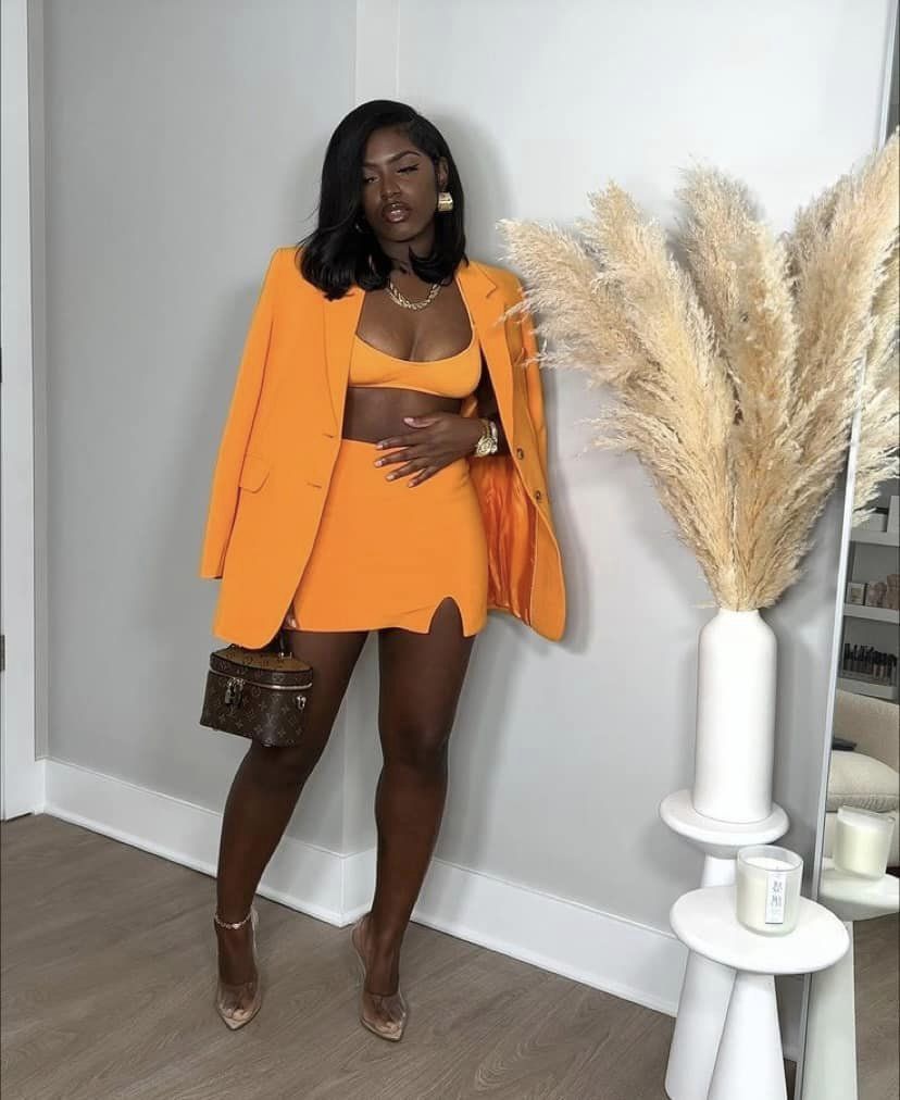 - Power Suit: Make a statement in the office with a tailored orange blazer and pants set, toned down with a white or cream blouse.