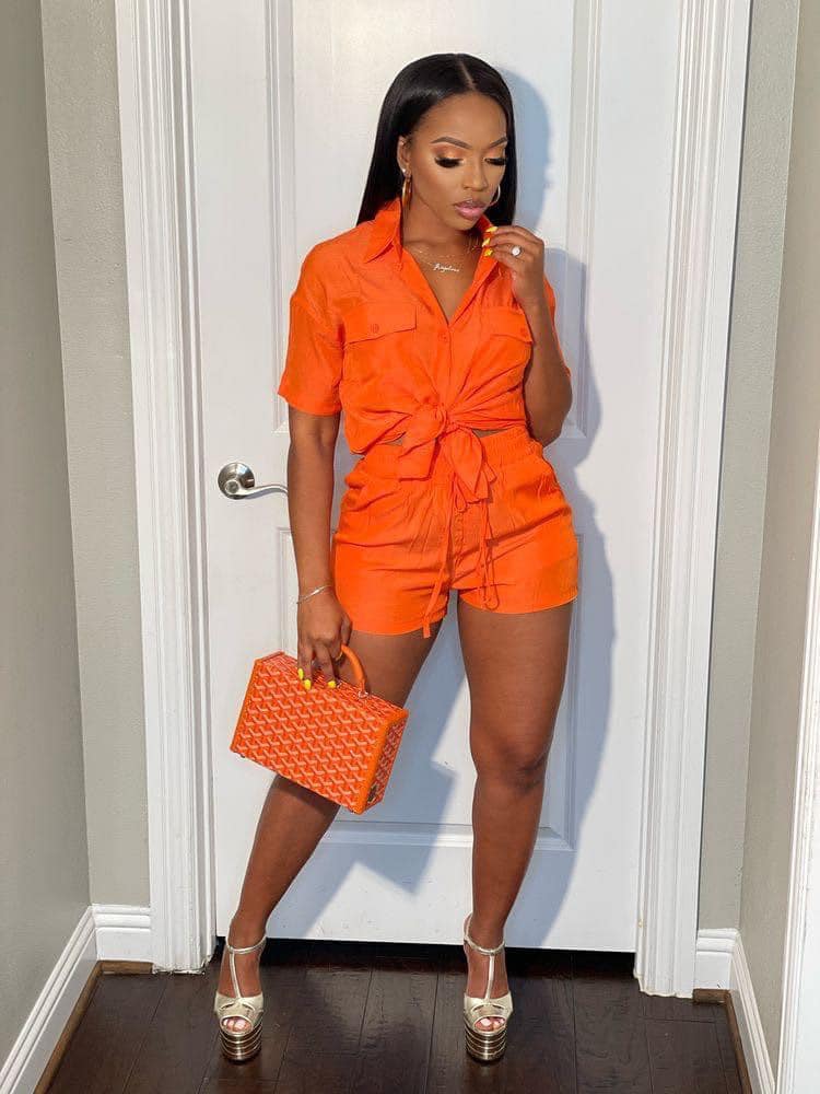 - Summer Vibes: Match a pair of orange shorts with a lightweight, white tank top and sandals.