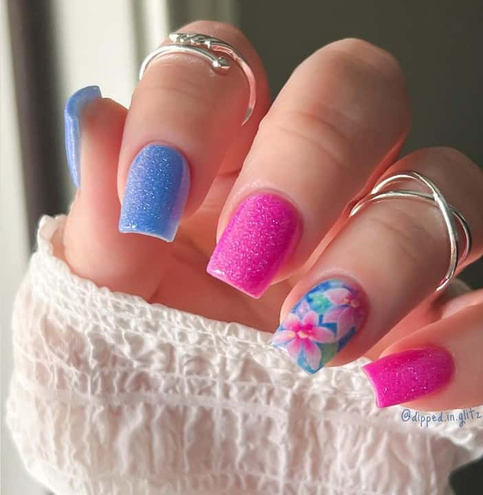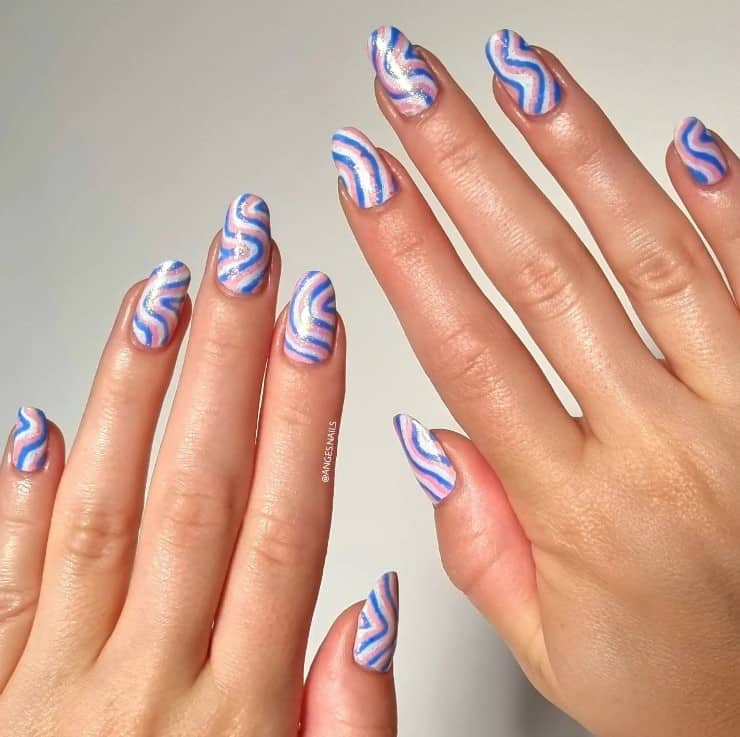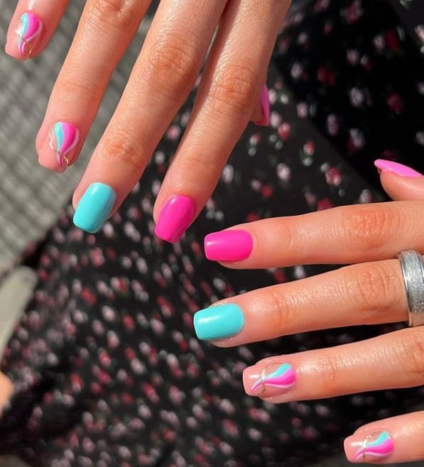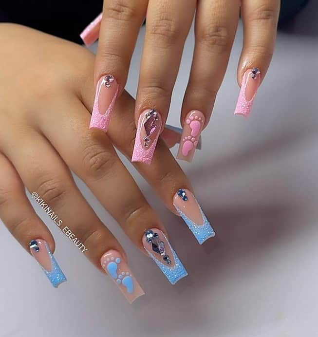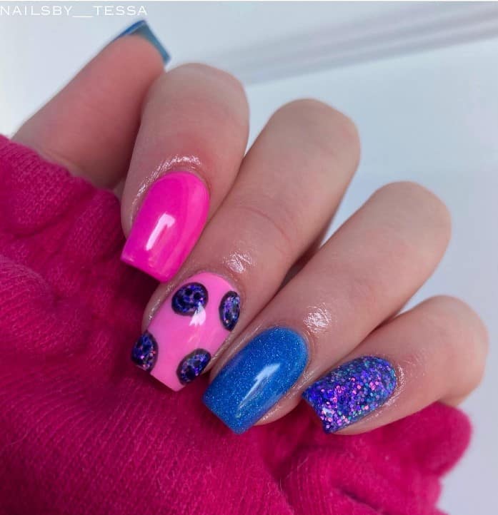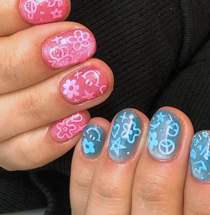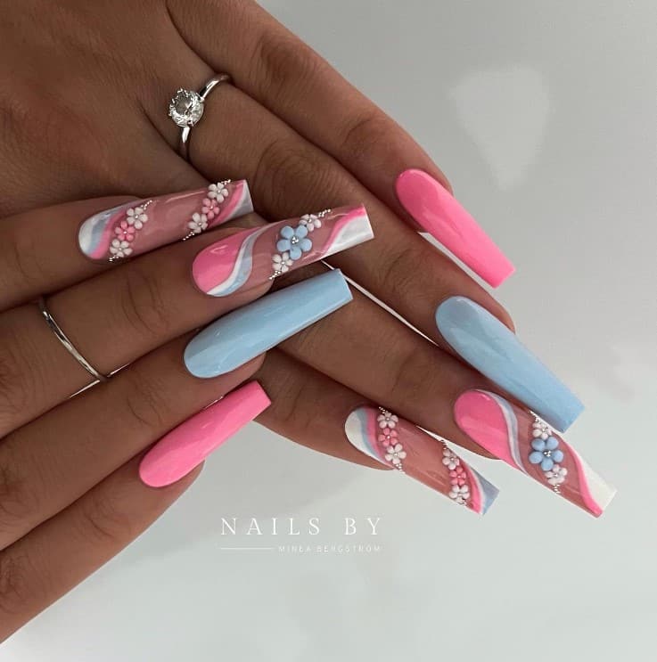 So whatever your style preference is, you can absolutely personalize pink and blue nails.