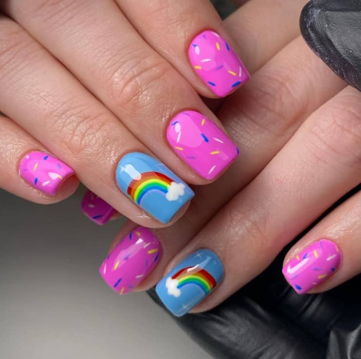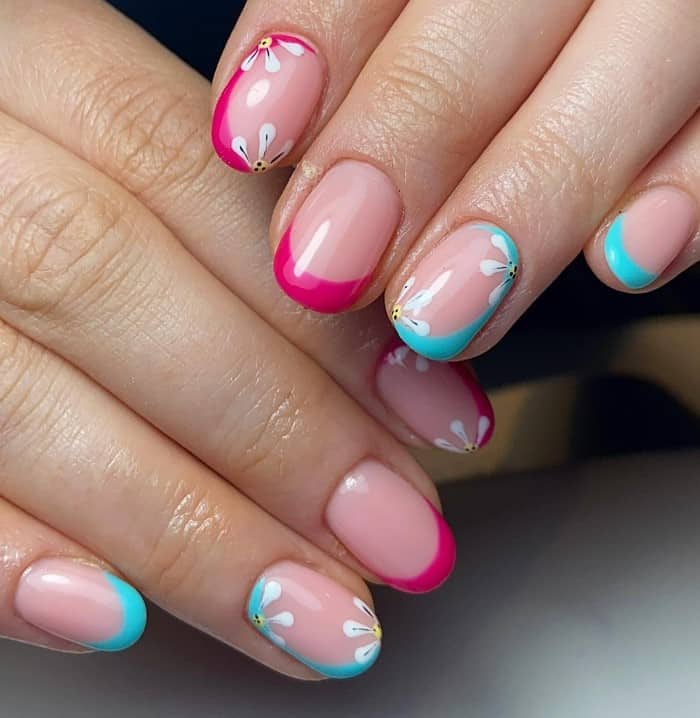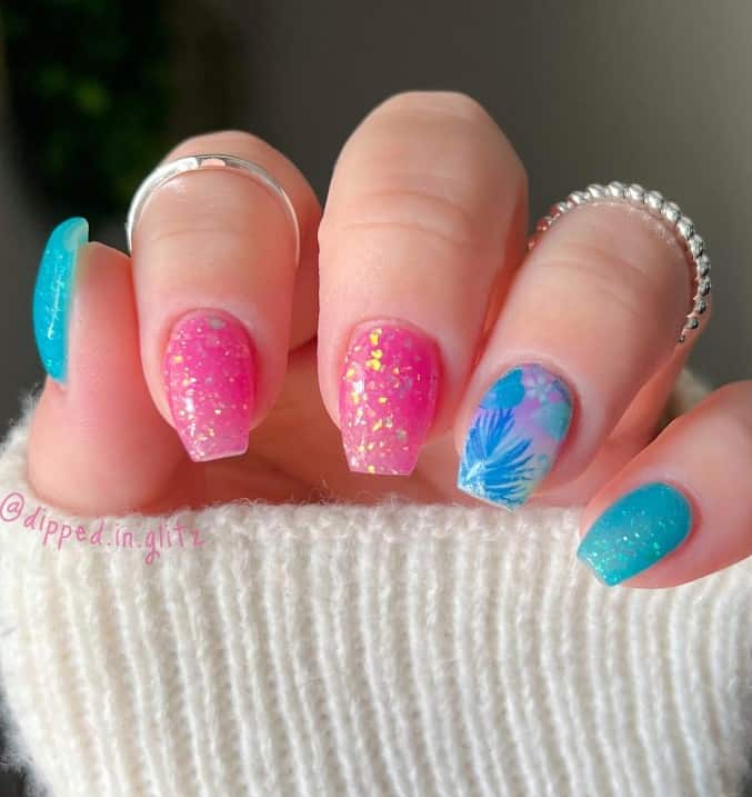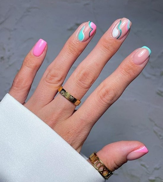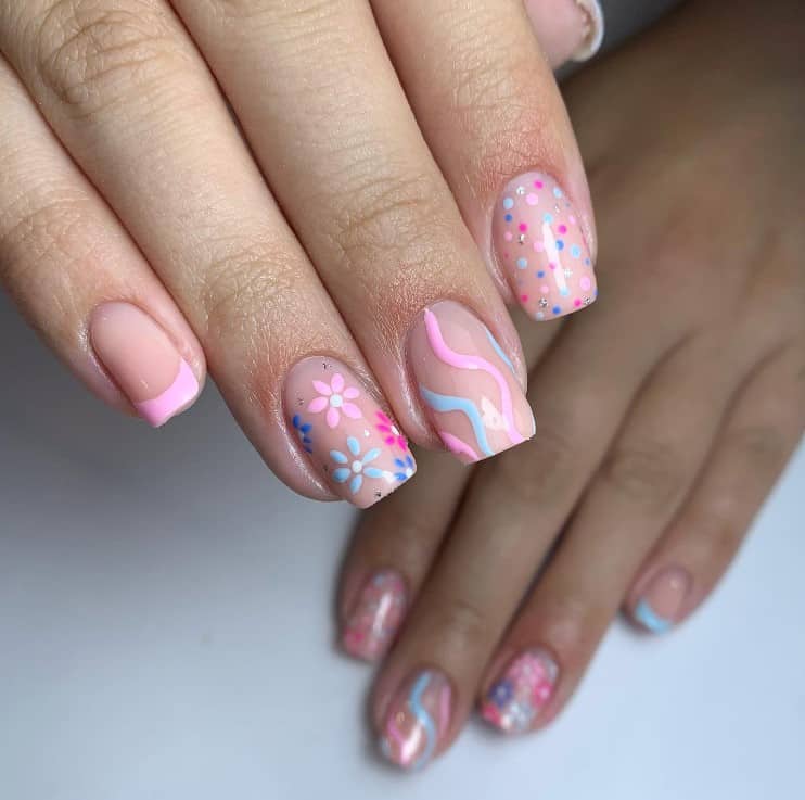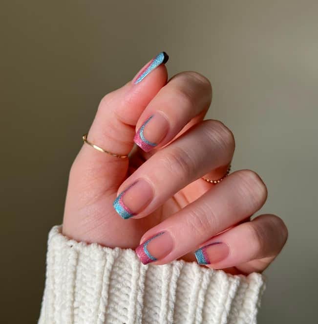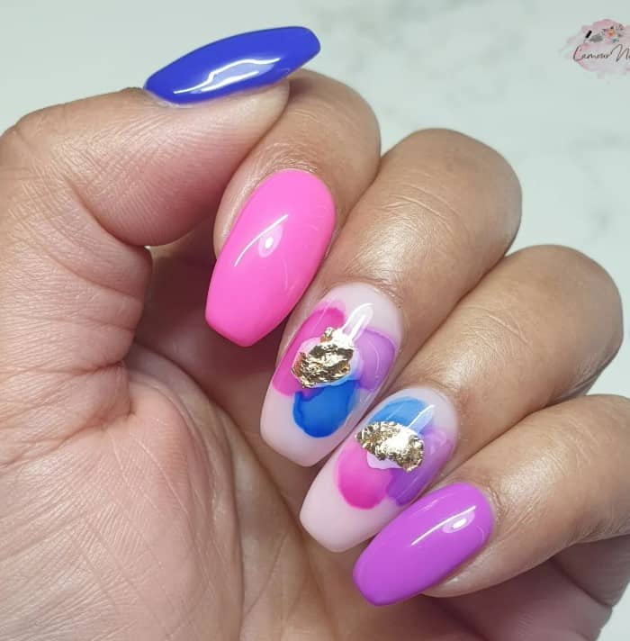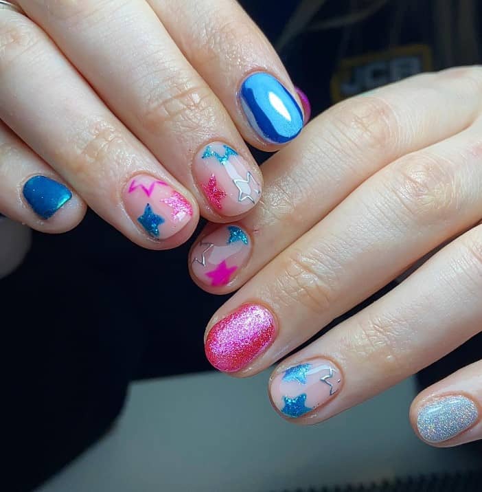 So whatever your style preference is, you can absolutely personalize pink and blue nails.
