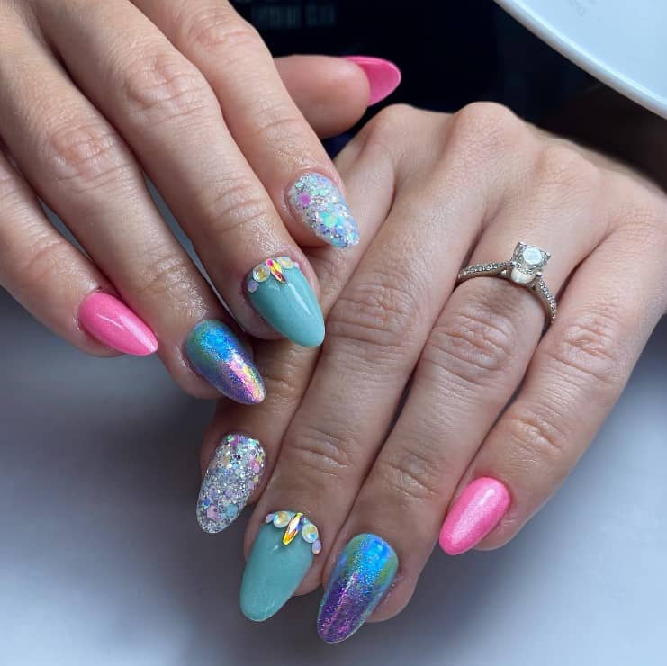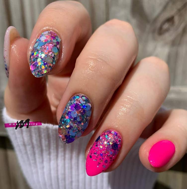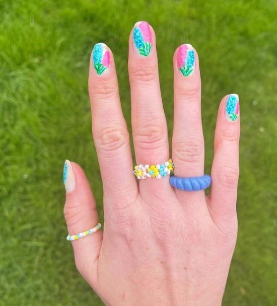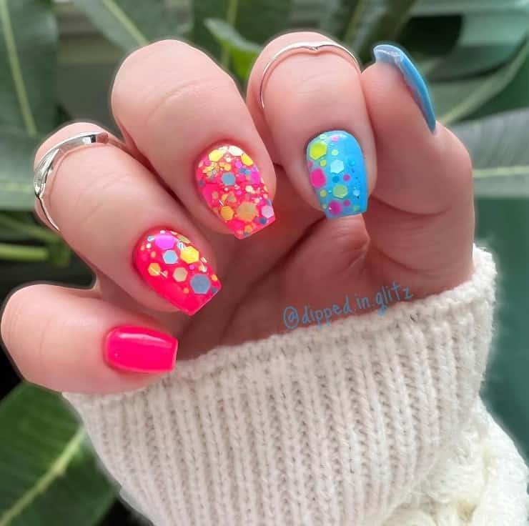 Because pink and blue nails are versatile, they can work well with any of the types of finishes we’ve mentioned.