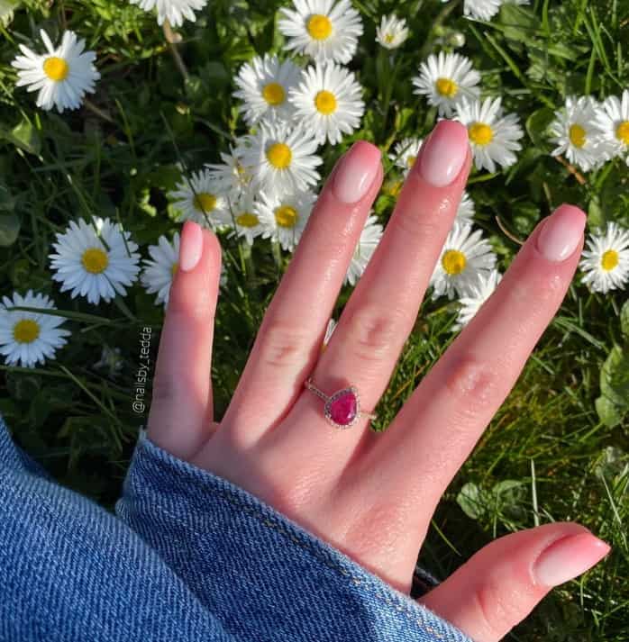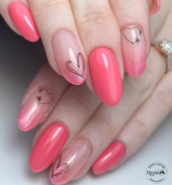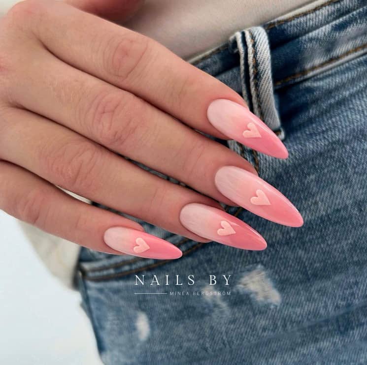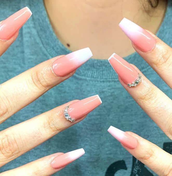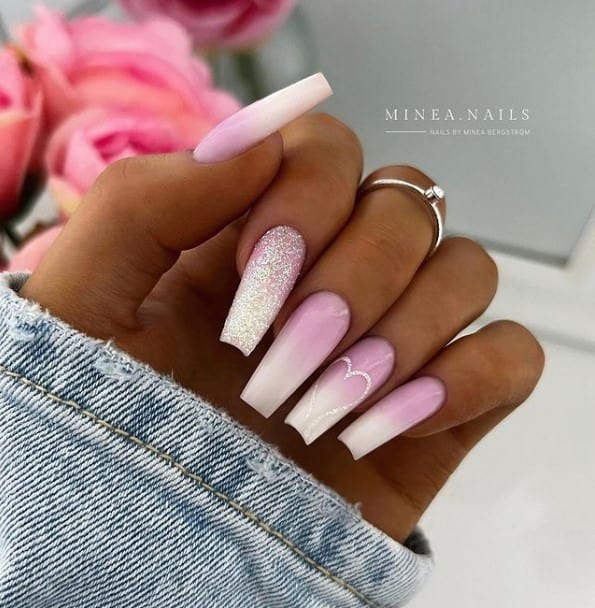 Leaving parts of your pink ombré nails bare creates a chic and modern nail look! You can play with different shapes, lines, and patterns to create an eye-catching design that’s sure to turn heads.