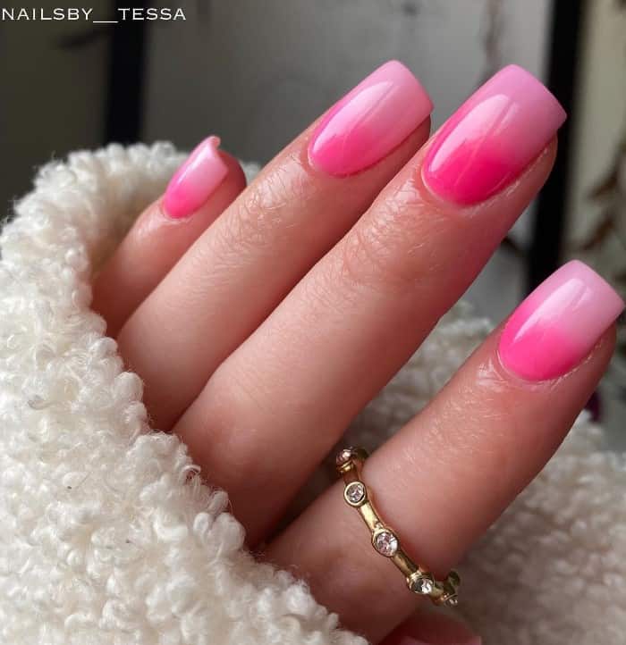 Add a touch of feminine charm and vibrancy to your fingertips by painting them in pink ombré!