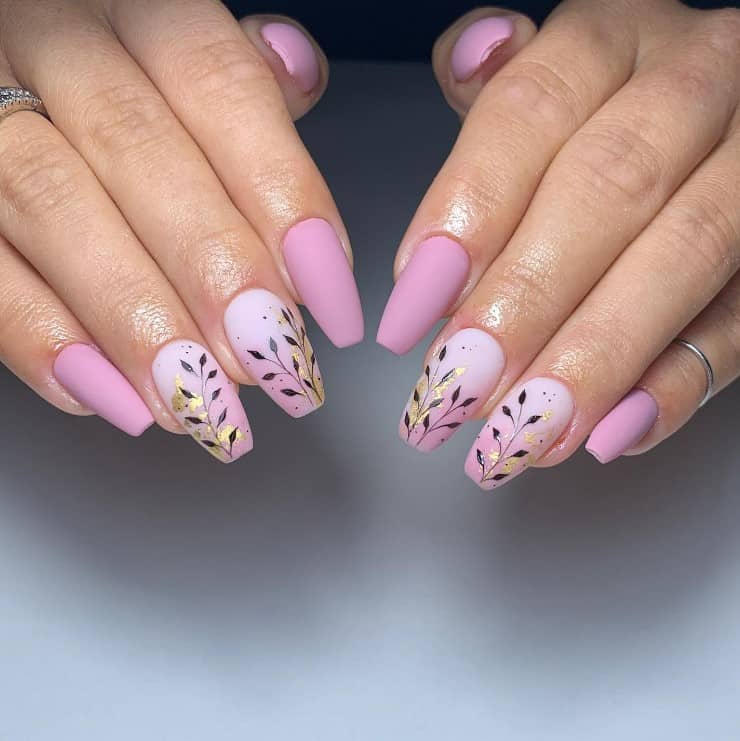 Whether they’re delicate roses, blooming cherry blossoms, or vibrant tropical flowers, floral designs on pink ombré nails can add a pop of color and freshness to your manicure.