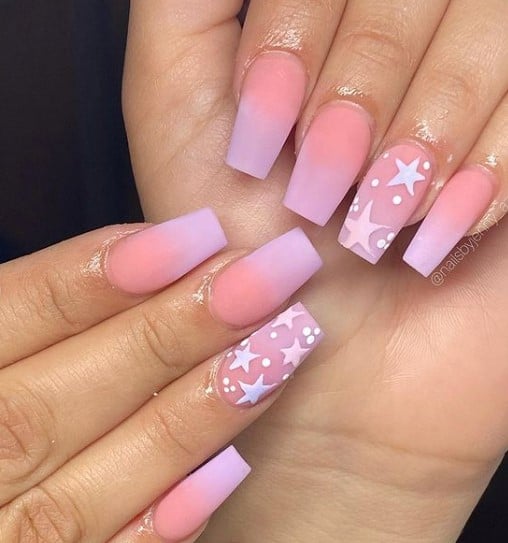 Here are some hot and fashionable design themes that are currently making waves in the world of nail art. These can instantly add charm to your pink ombré nails.