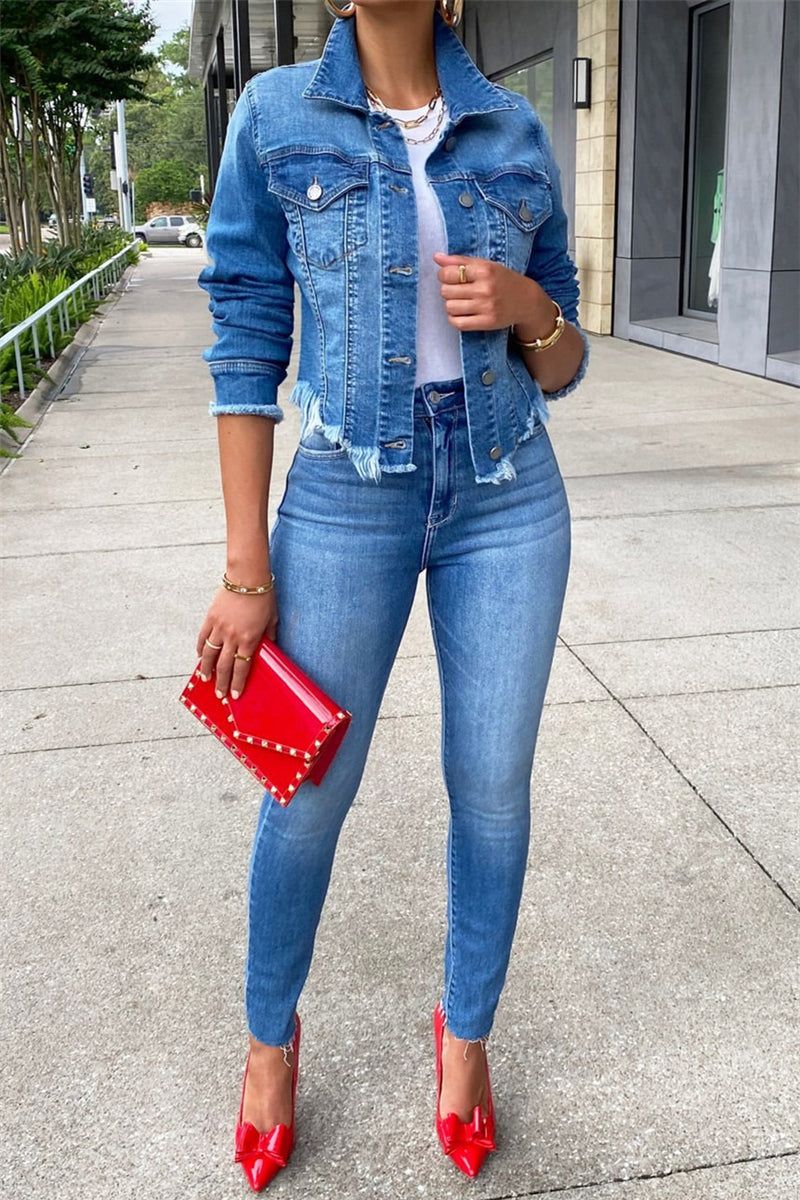 Product Name Baby Blue Fashion Casual Solid Cardiga