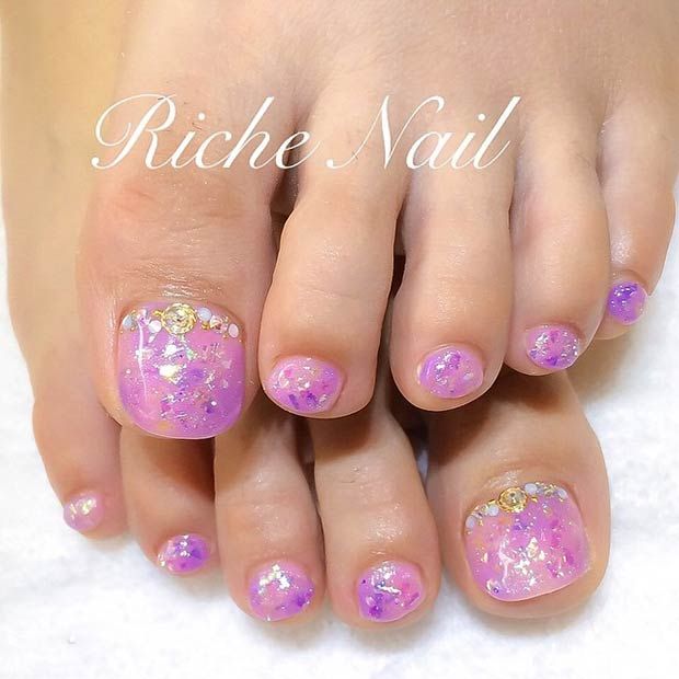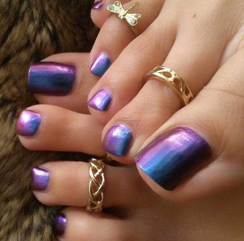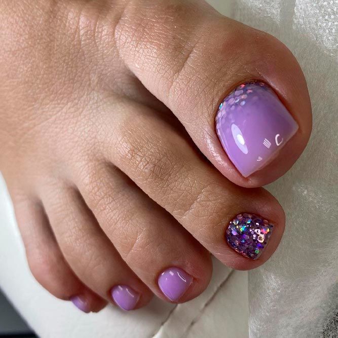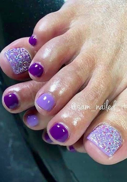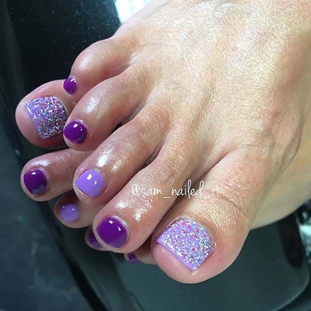 Another fun way to incorporate purple into your toenail look is through ombre or gradient designs. This involves blending different shades of purple together for a seamless and stunning effect. You can also add other colors to the mix, such as pink or blue, for a more playful and colorful look.