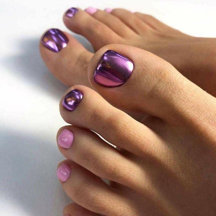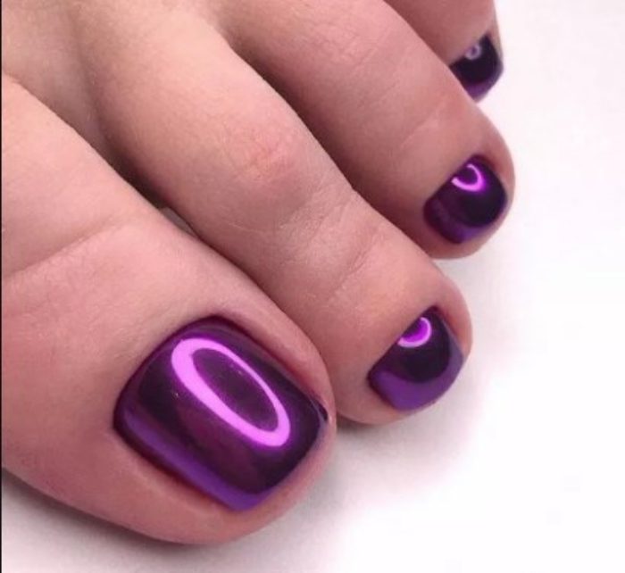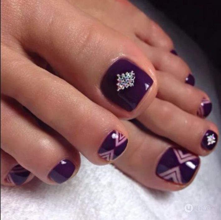 For a modern and edgy look, experiment with geometric patterns on your purple toenails. Use tape or nail art tools to create clean lines, triangles, or intricate shapes in various shades of purple. This design adds a contemporary touch to your pedicure, perfect for those who like to push the boundaries of nail art.