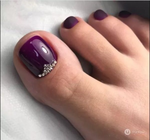 Create an elegant and sophisticated look by opting for a purple ombré design on your toenails. Start with a light shade of purple near the cuticle and gradually transition to a deeper shade towards the tips. This gradient effect adds depth and dimension to your nails, giving them a polished and stylish appearance.