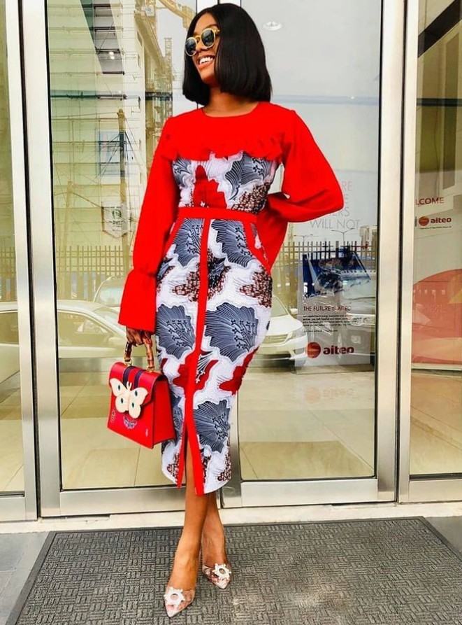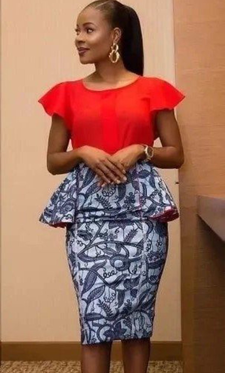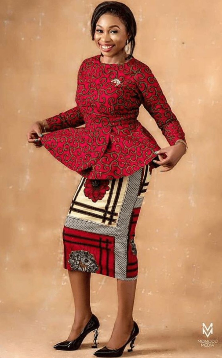 - Ankara Pencil Skirt: Pair a high-waist Ankara pencil skirt in a bold red pattern with a crisp white shirt or a subtle black blouse. Add some stiletto heels, and you’re good to go.