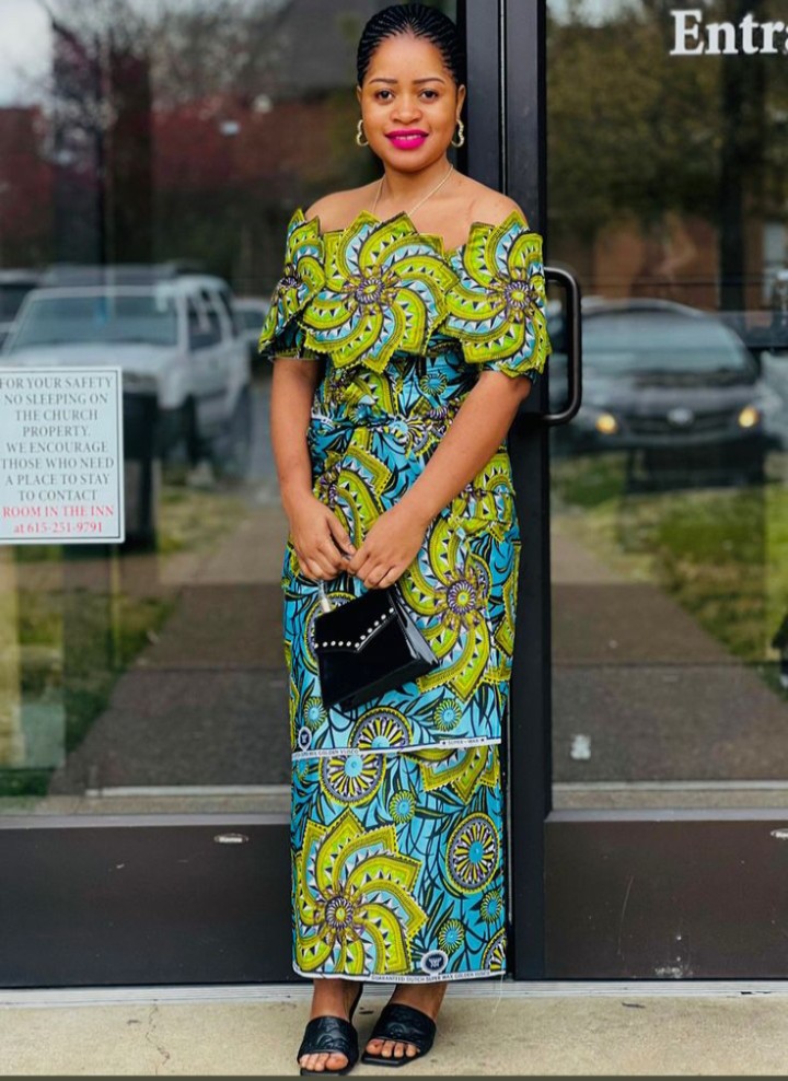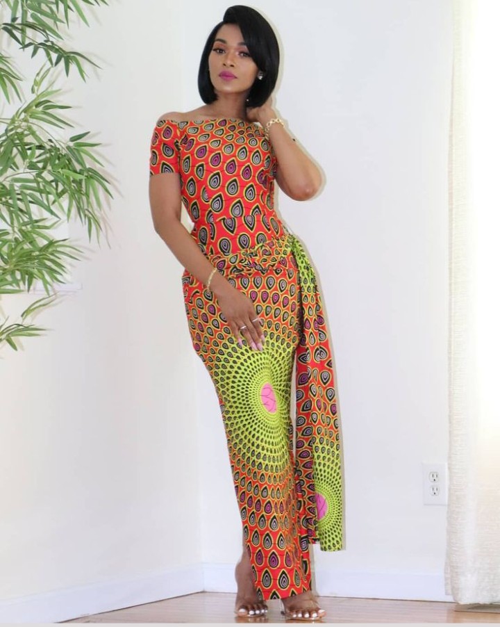 2. Off-Shoulder Ankara Gown: Show off your shoulders with an off-shoulder Ankara gown. This style adds a trendy and feminine vibe to your outfit.
