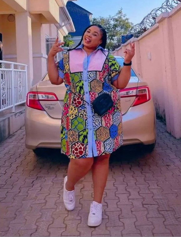 3. V-Neck Ankara Shirt Dress with Belt: Elevate your style with a V-neck Ankara shirt dress cinched at the waist with a belt, creating a smart and polished look.