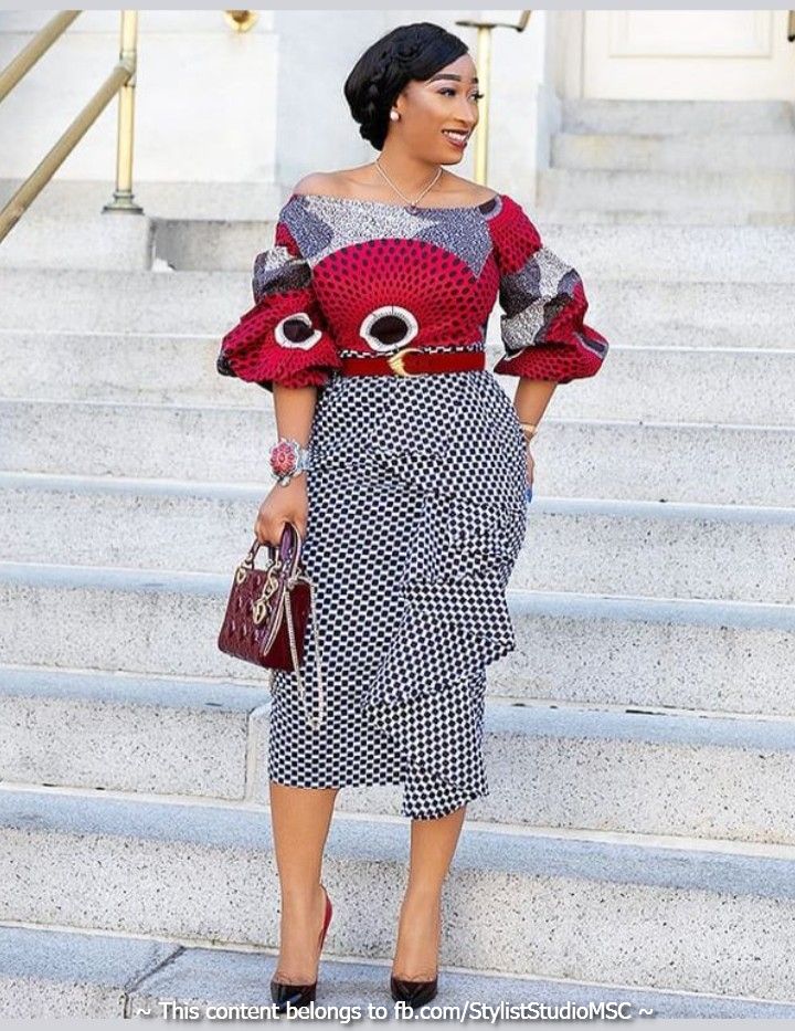 Pair a high-waist Ankara skirt with a solid color blouse. This combination strikes a balance between traditional and contemporary styles, perfect for both formal and informal gatherings.