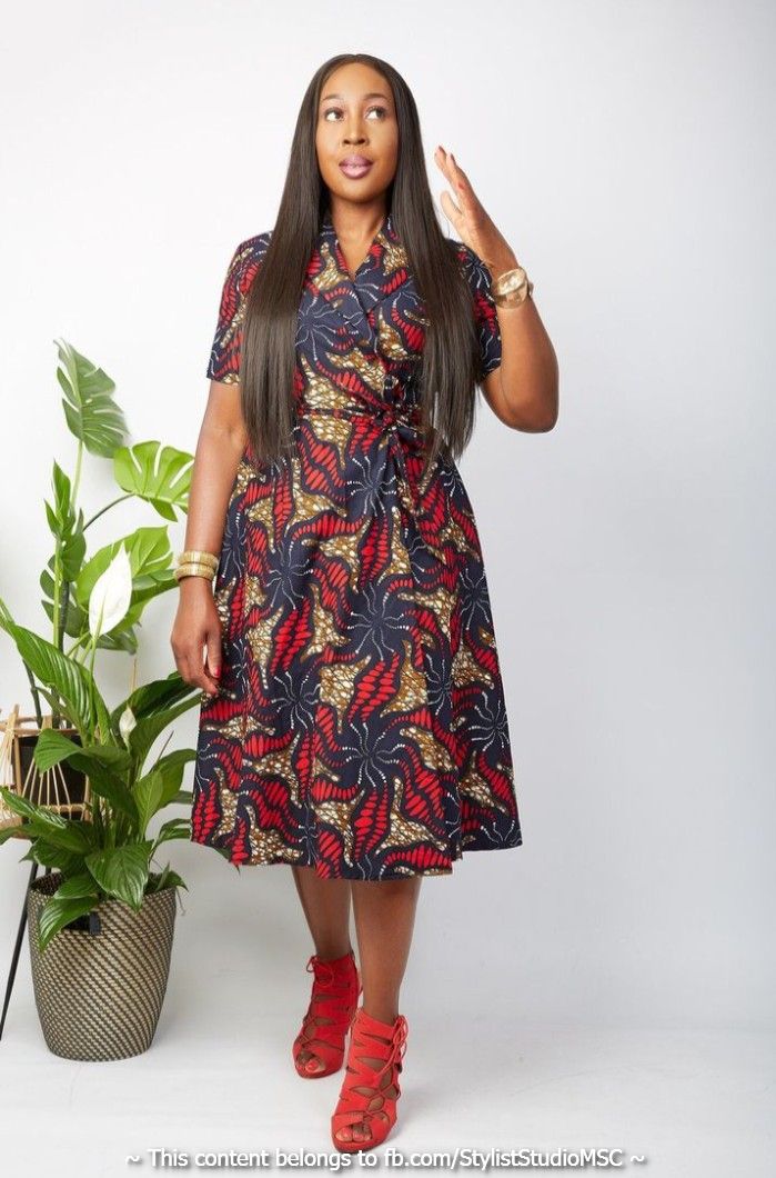 A fusion of the classic shirt dress and the vibrant Ankara prints. This dress style is both casual and smart, suitable for various occasions.