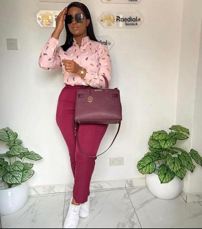 - Accessories: A structured briefcase-style bag and subtle but classy jewelry.