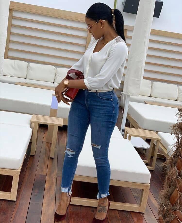 - Outfit: Skinny or straight-leg jeans paired with a cashmere sweater or a stylish top.