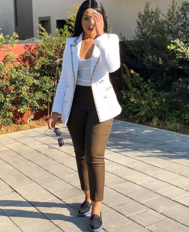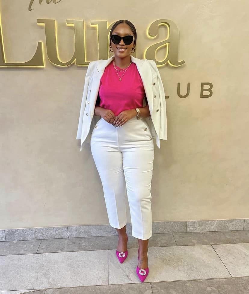 - Outfit: A tailored blazer paired with high-waisted trousers or a pencil skirt.