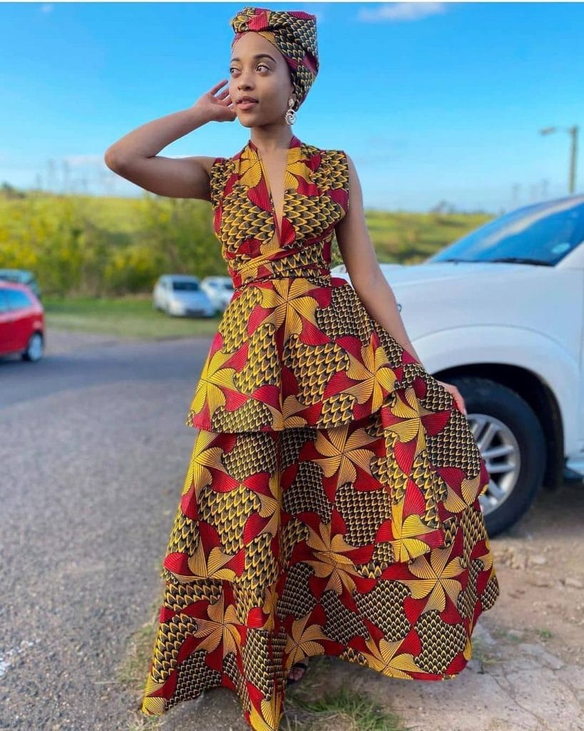 Long Ankara dresses that flow to the ground and feature full sleeves are perfect for Muslim women. These dresses provide complete coverage while flaunting the beautiful Ankara prints. They can be tailored to include higher necklines and looser fits, adhering to modesty standards.
